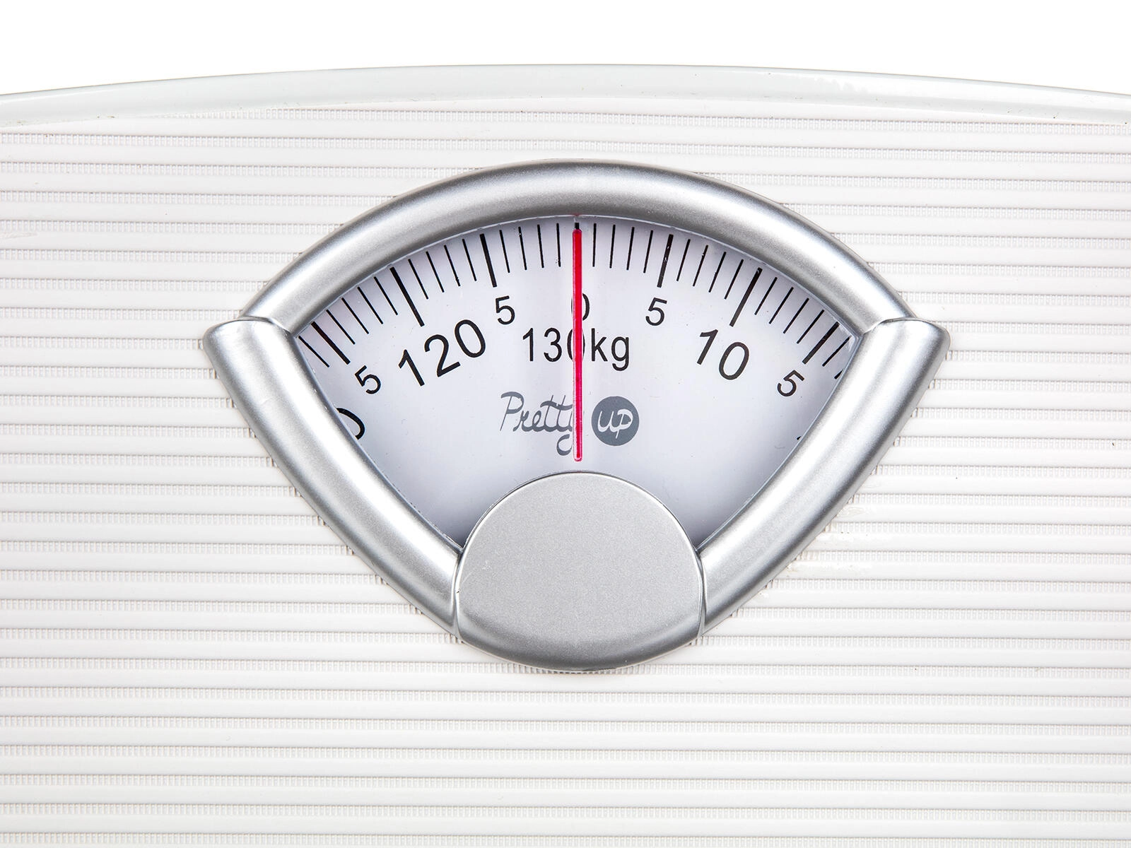 Velika skala s jasnim oznakama i crvenom kazaljkom omogućuje brzo i precizno očitavanje težine do 130 kg.