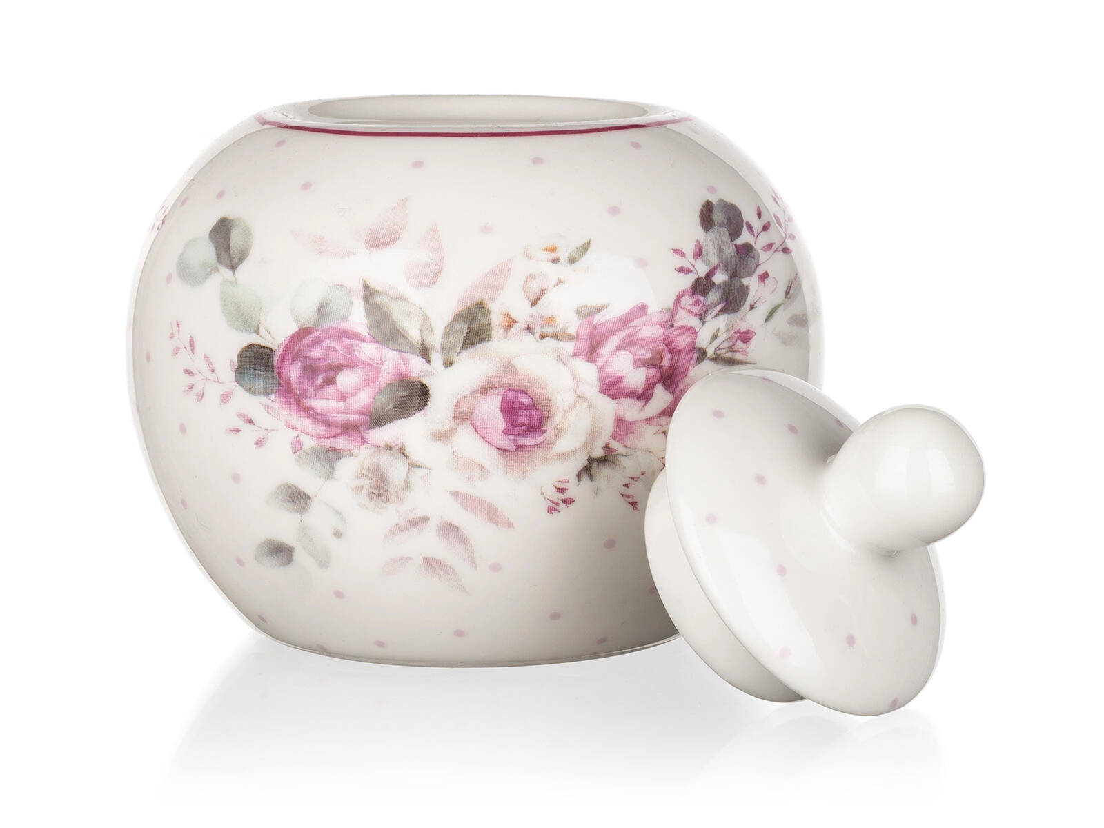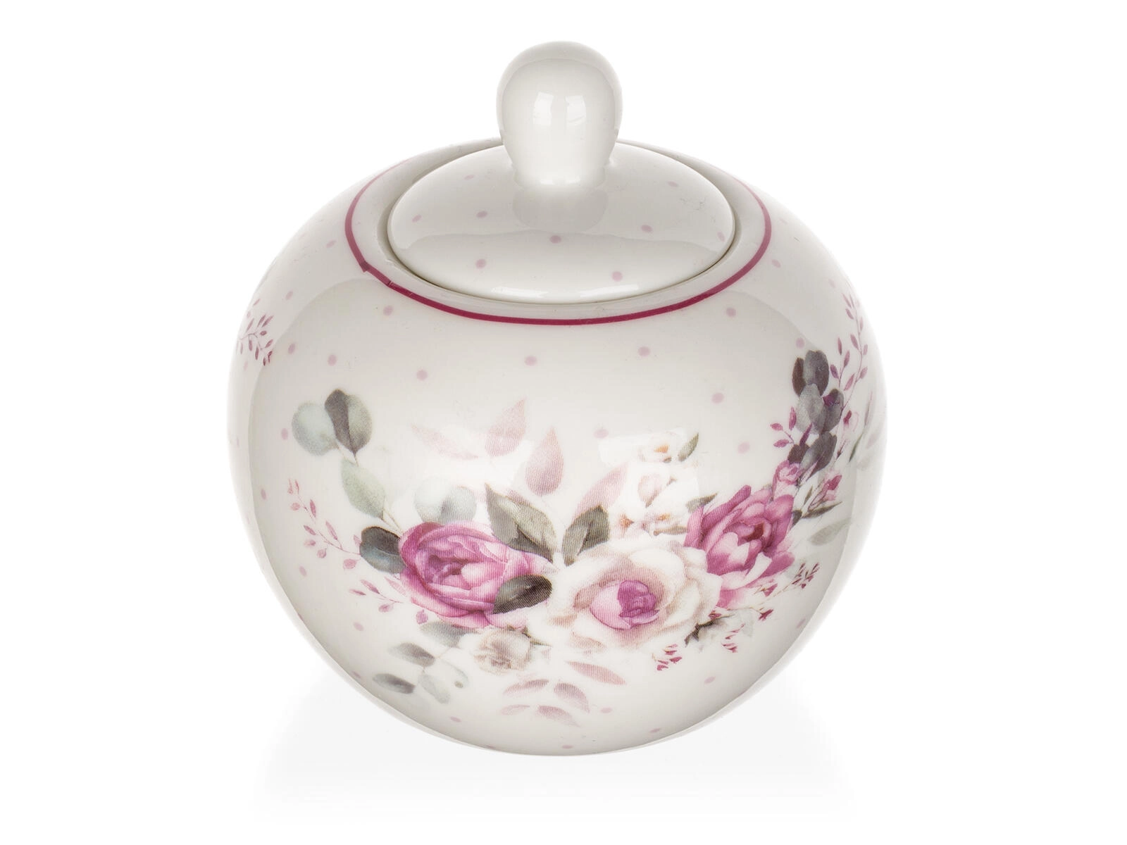 Posudica ima glatku glaziranu površinu za lako čišćenje i praktičan poklopac s gumbić drškom koji štiti sadržaj. Za savršeno usklađeno posluživanje može se kombinirati s čajnikom, šalicama, vrčem za mlijeko i drugim komadima u istom dekoru ROSE.