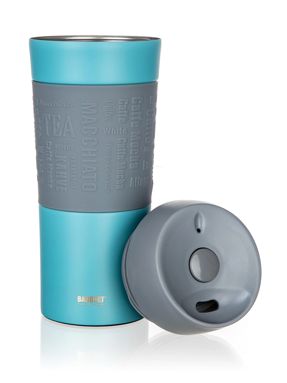 Teksturirana silikonska traka povećava udobnost i stabilnost u ruci, štiti od topline i daje šalici moderan izgled.
