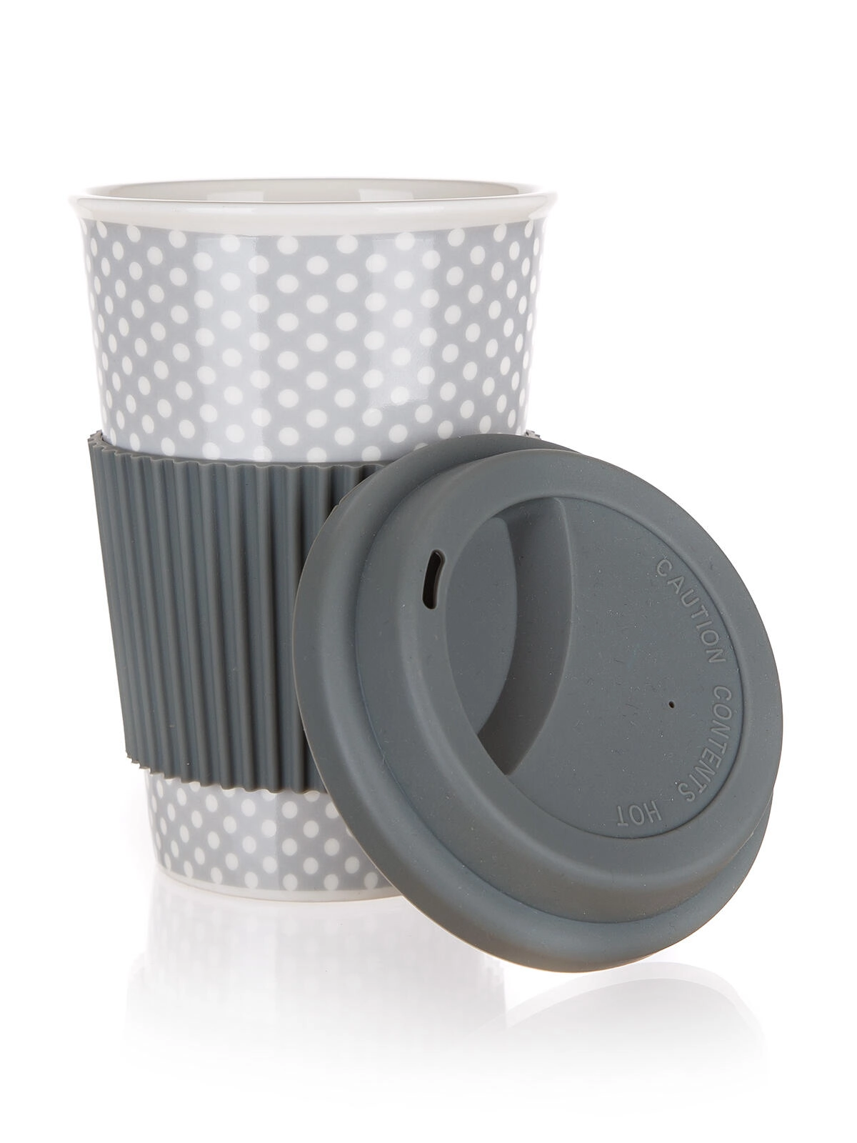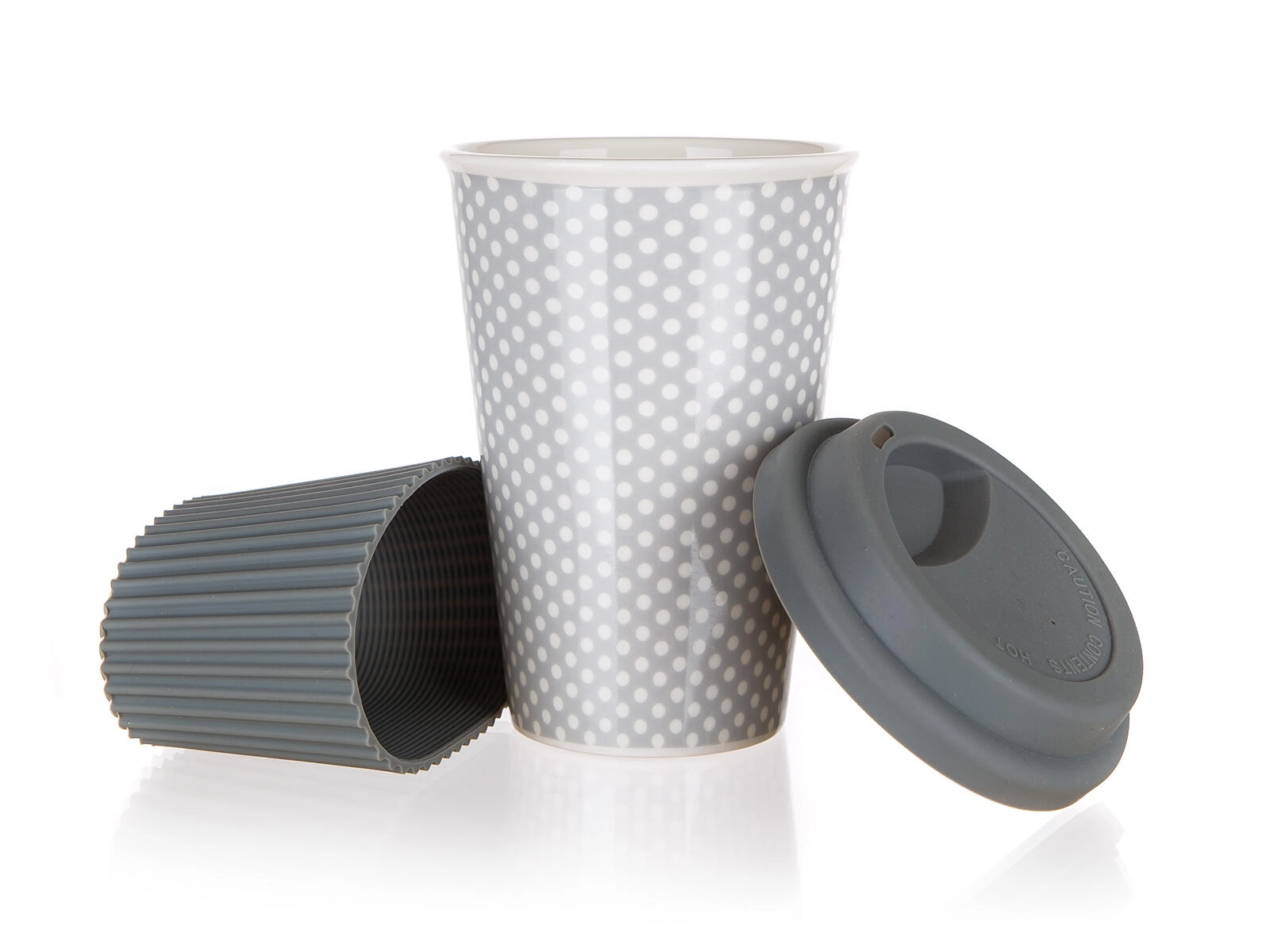 Šalica je dizajnirana za svakodnevnu upotrebu – lako se održava, može se prati u perilici posuđa i koristiti u mikrovalnoj pećnici. Minimalistički sivi dizajn s točkicama pristaje uredu, automobilu i domu te naglašava vaš osobni stil.