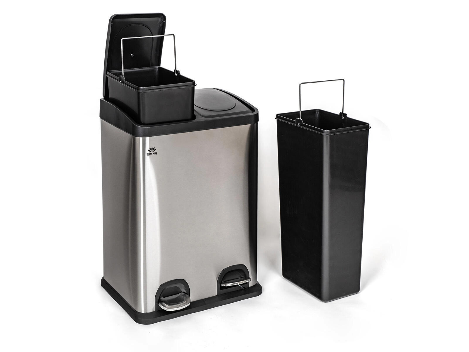 Ova nerezinska kanta s dvostrukim komorama idealna je za kuhinje, urede i manje domove gdje je naglasak na razvrstavanju otpada i čistom dizajnu. Zasebni pedali upravljaju svakim poklopcem posebno za maksimalnu higijenu bez dodira. Izvadive unutarnje kante od izdržljive plastike omogućuju brzu manipulaciju, pranje i udobnu zamjenu vreća.