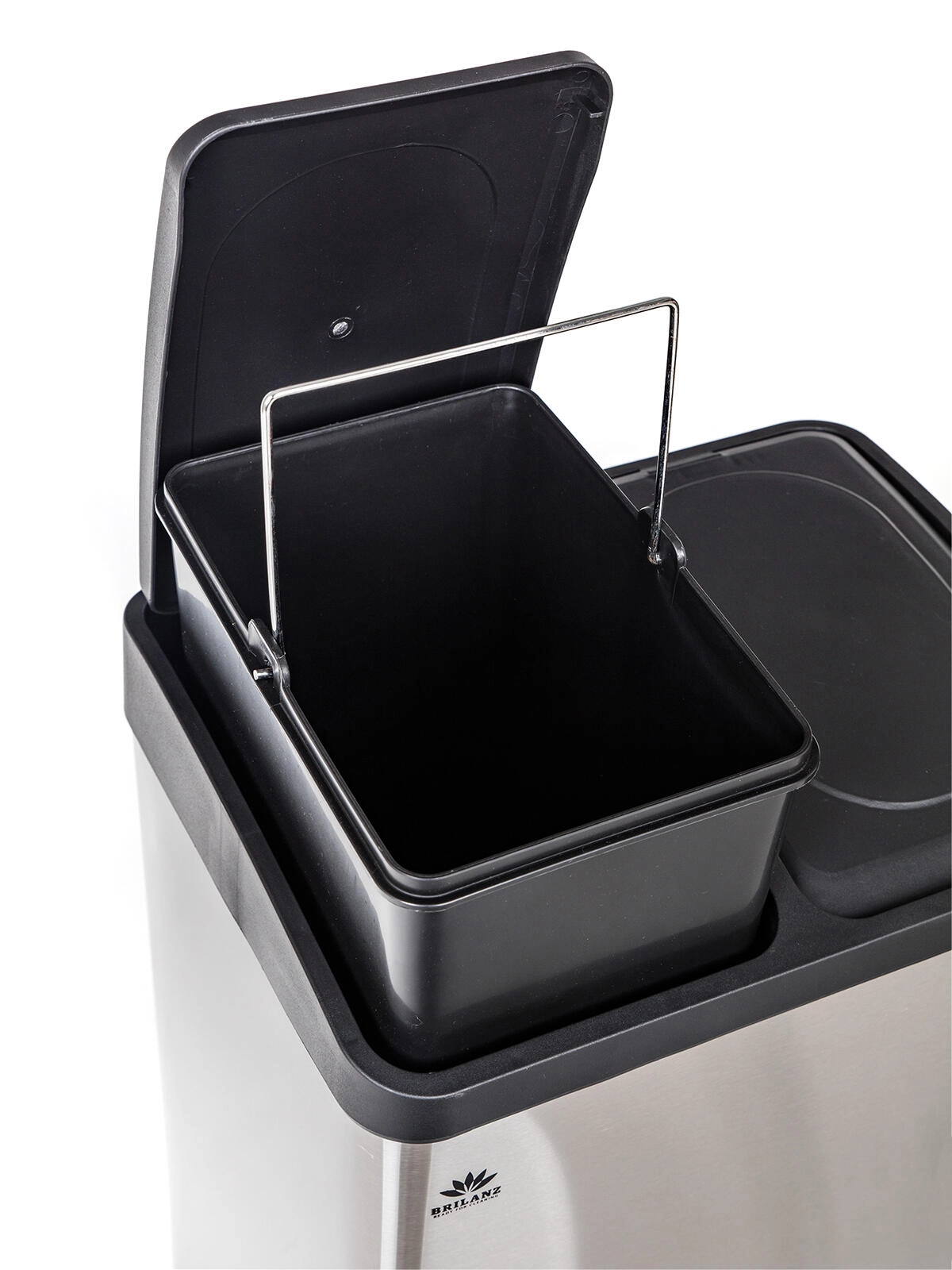 Zahvaljujući kompaktnim dimenzijama i pravokutnom obliku, kantu je lako smjestiti uz zid ili u kut. Brušeni inox djeluje elegantno, a otisci prstiju su na njemu manje vidljivi. Odvojeni poklopci pomažu zadržati mirise i održati red u svakodnevnoj upotrebi.