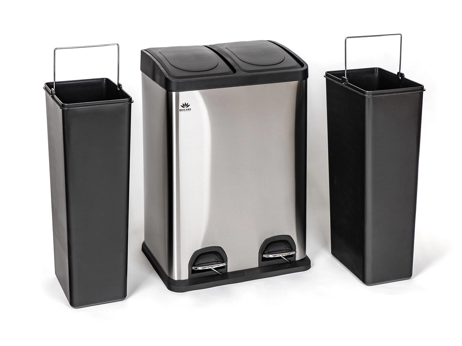 Praktična i higijenska kanta za razvrstavanje otpada zapremine 40 l (2×20 l) u nerezinskom izvedbom s dvama pedalima za beskontaktno otvaranje. Dva odvojena odjeljka omogućuju jednostavno razvrstavanje otpada, a izvadive plastične posude olakšavaju čišćenje i zamjenu vrećica, dok brtvena poklopca pomažu smanjiti neugodne mirise i unakrsnu kontaminaciju.
