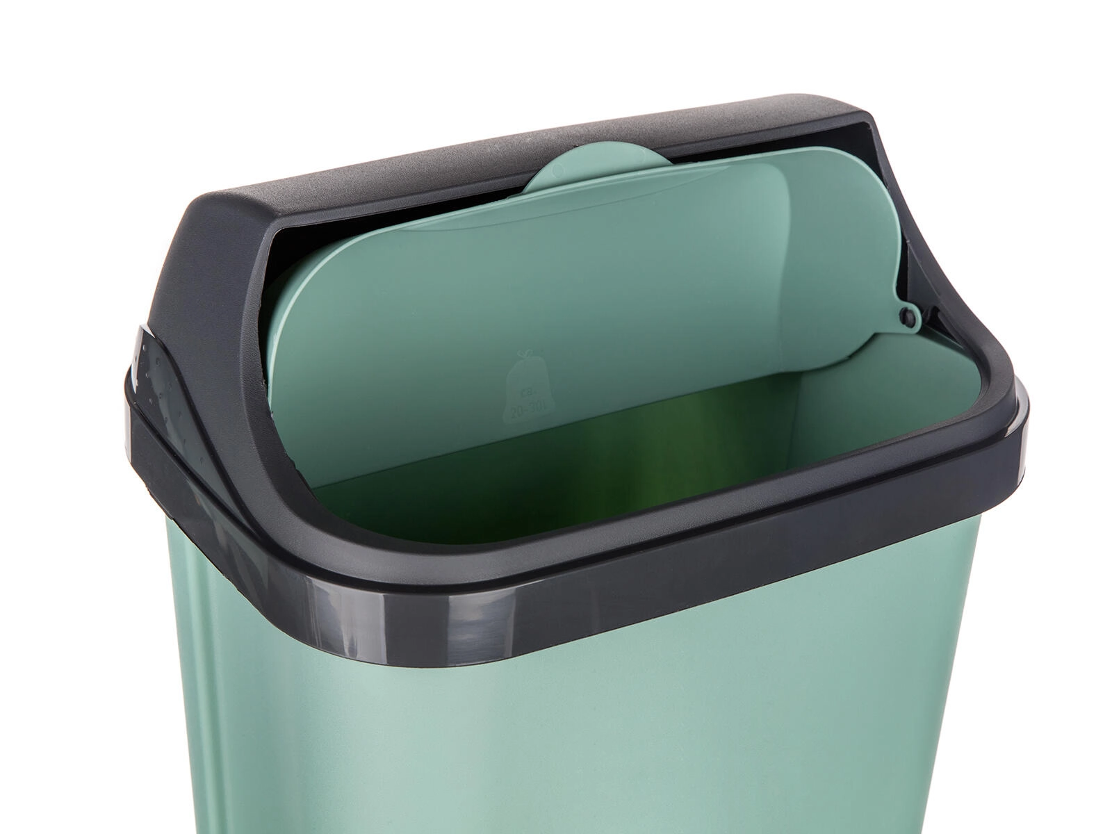 Kompaktna kanta za otpad zapremnine 10 l sa swing (njihajućim) poklopcem idealna je za kuhinju, kupaonicu i ured. Zahvaljujući uskom pravokutnom obliku štedi prostor, ima lako perivu plastičnu površinu i praktičan njihajući poklopac za higijensko odlaganje bez dodirivanja. U pakiranju su uključene naljepnice za odvajanje otpada.