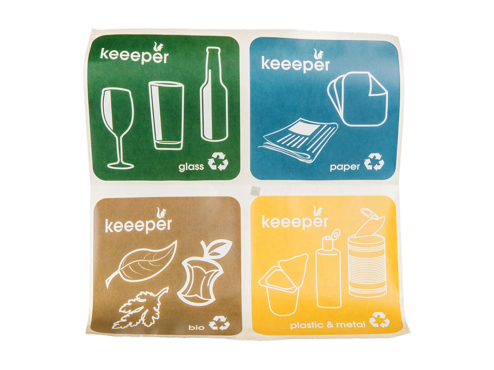 Dio pakiranja su naljepnice (staklo, papir, bio, plastika + metal) kojima lako označite kantu za pregledno odvajanje.