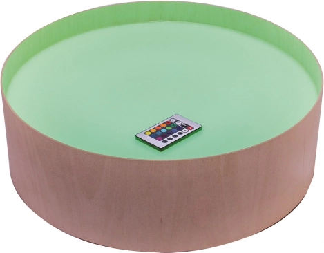 Svjetleći stol Jonely je praktično i lagano pomagalo za stvaranje i relaksaciju. Zahvaljujući okruglom obliku i kompaktnim dimenzijama, više se djece može istovremeno udobno zabavljati. LED diode ispod izdržljivog pleksiglasa (polikarbonat, 45 % propusnosti) stvaraju 16 boja s mogućnošću automatskih prijelaza u 4 programa, koji podržavaju osjetilnu stimulaciju i kreativne igre.
