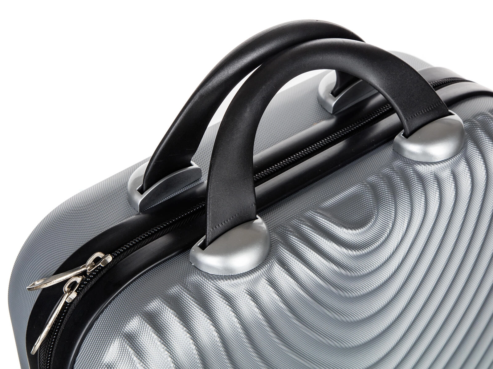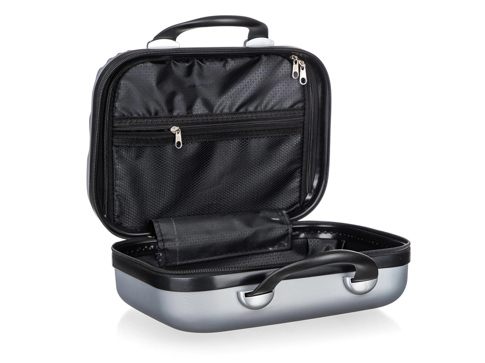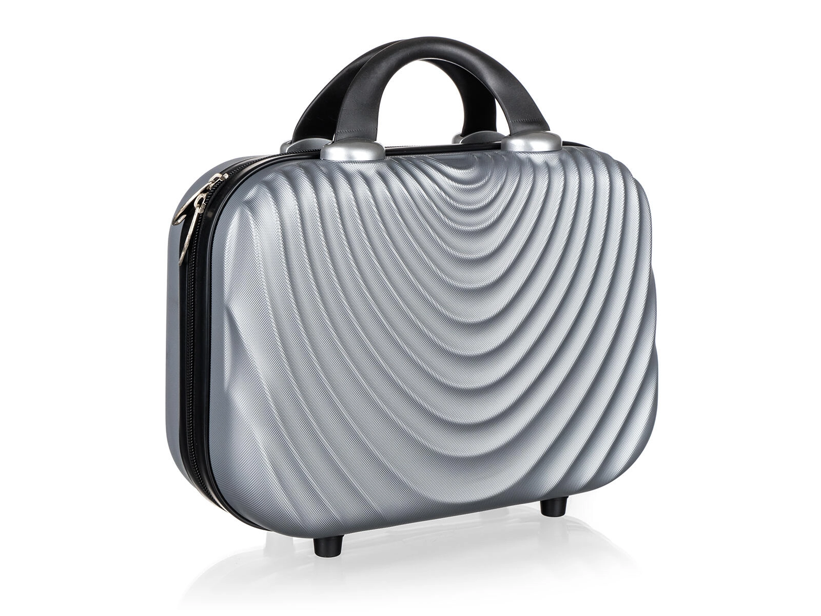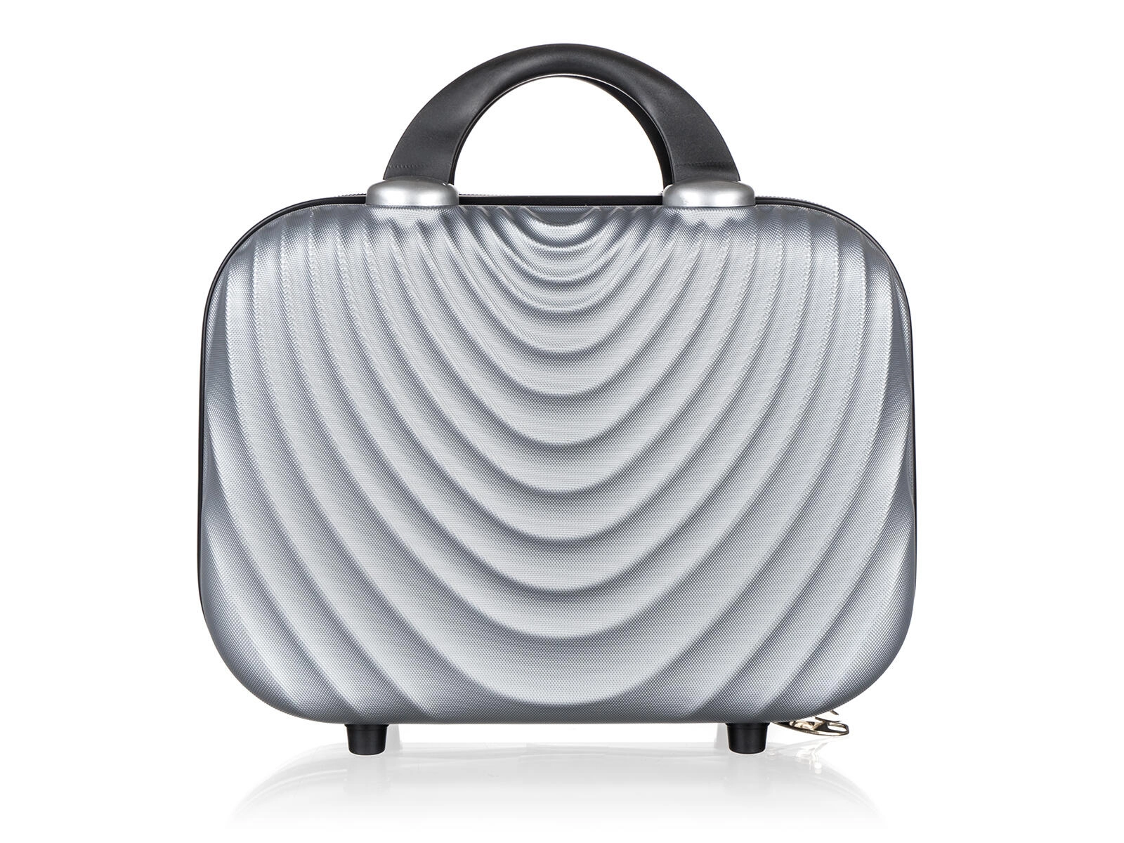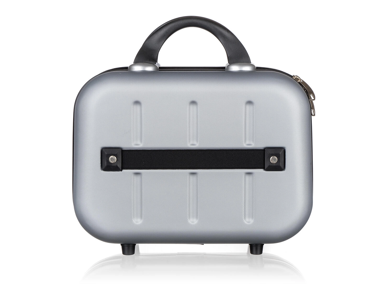 Praktična i lagana tvrda kozmetička zapremnine 10 l izrađena je od kvalitetne ABS plastike koja je otporna na udarce i štiti spremljene stvari. Elegantno sivo izdanje dopunjuju stabilne nožice za postavljanje i stražnja traka za lako navlačenje na teleskopsku ručku kofera – putovanje će tako biti maksimalno udobno.