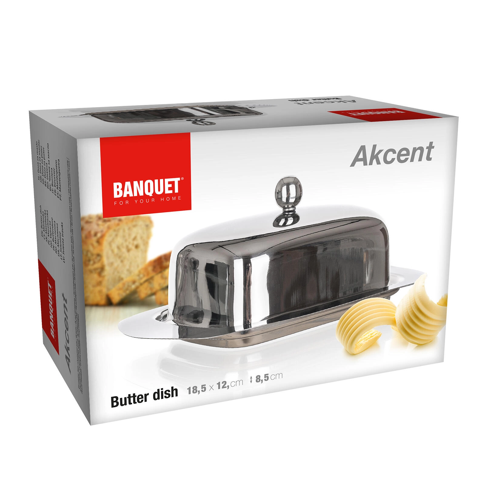 Elegantna maslenica od nehrđajućeg čelika AKCENT održat će vaš maslac svježim i spremnim za posluživanje. Zahvaljujući kompaktnim dimenzijama stane u svaki hladnjak, a izdržljiv materijal osigurava dug vijek trajanja. Higijenska površina od nehrđajućeg čelika, praktične dimenzije i stilski dizajn za svakodnevnu upotrebu.