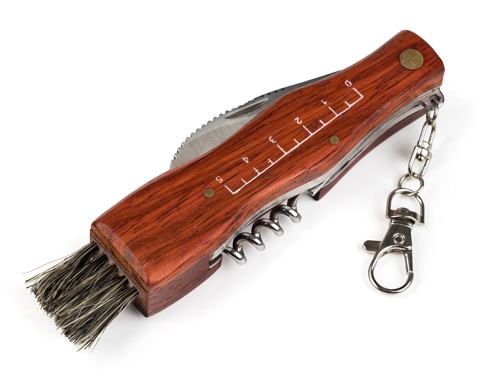Praktični gljivarski nož AKCENT spaja oštru oštricu od nehrđajućeg čelika 7 cm s kistom za čišćenje gljiva, vadičem čepova i karabinom za lako pričvršćivanje. Zahvaljujući drvenoj dršci odlično leži u ruci, a njegova sklopiva konstrukcija štedi prostor u džepu ili ruksaku.