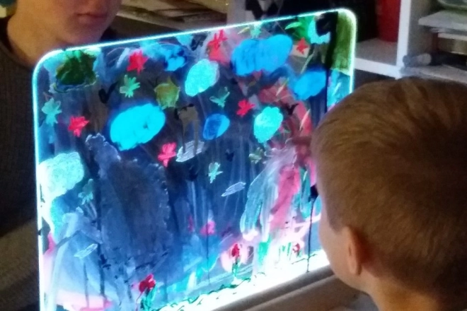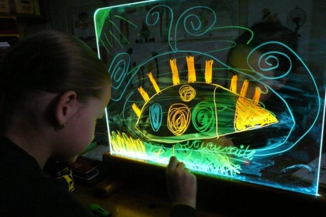 Razsvijetlite dječju maštu. Svjetleća ploča Jonely s izdržljivom površinom od kaljenog stakla omogućuje slikanje vodenim bojama, prstima i perivim flomasterima. Površina se lako čisti, a zahvaljujući mogućnosti obostranog crtanja zabavu mogu istovremeno dijeliti i braća i sestre. Integrirane LED diode u donjem okviru lijepo osvjetljavaju svaki potez i pretvaraju crteže u sjajna djela.