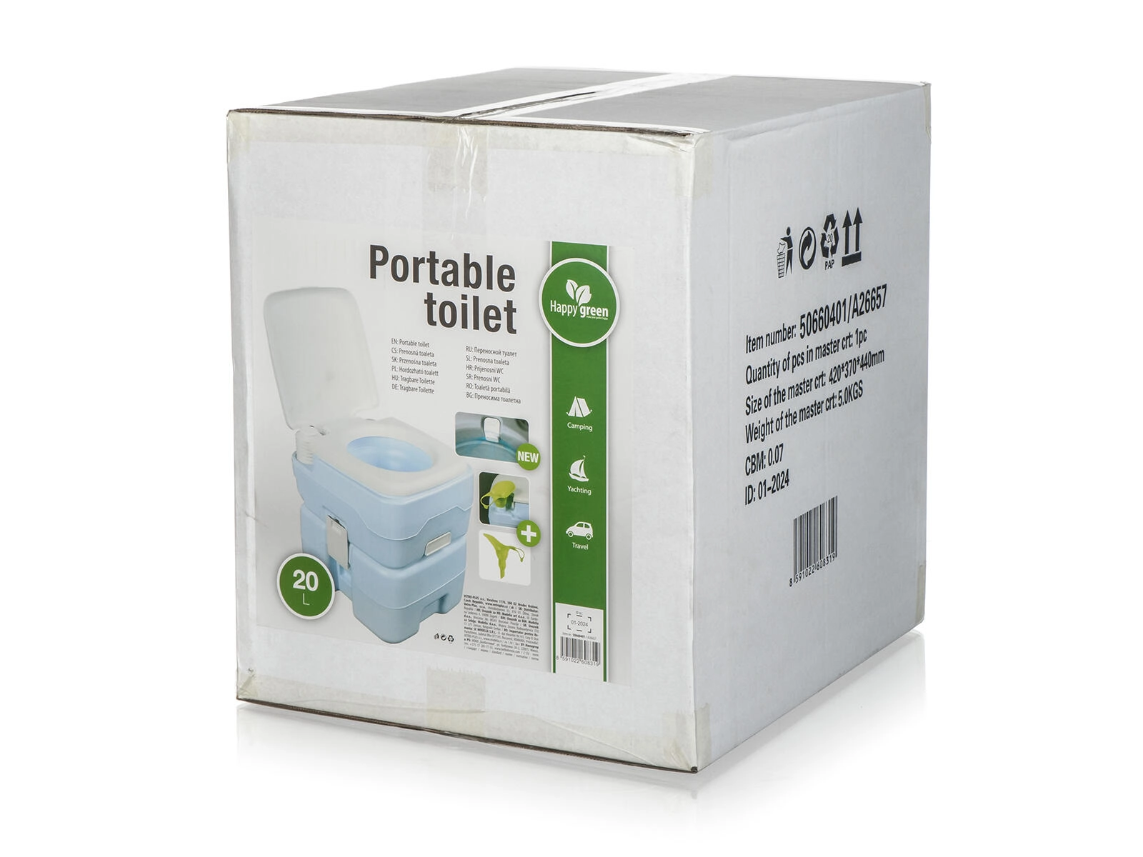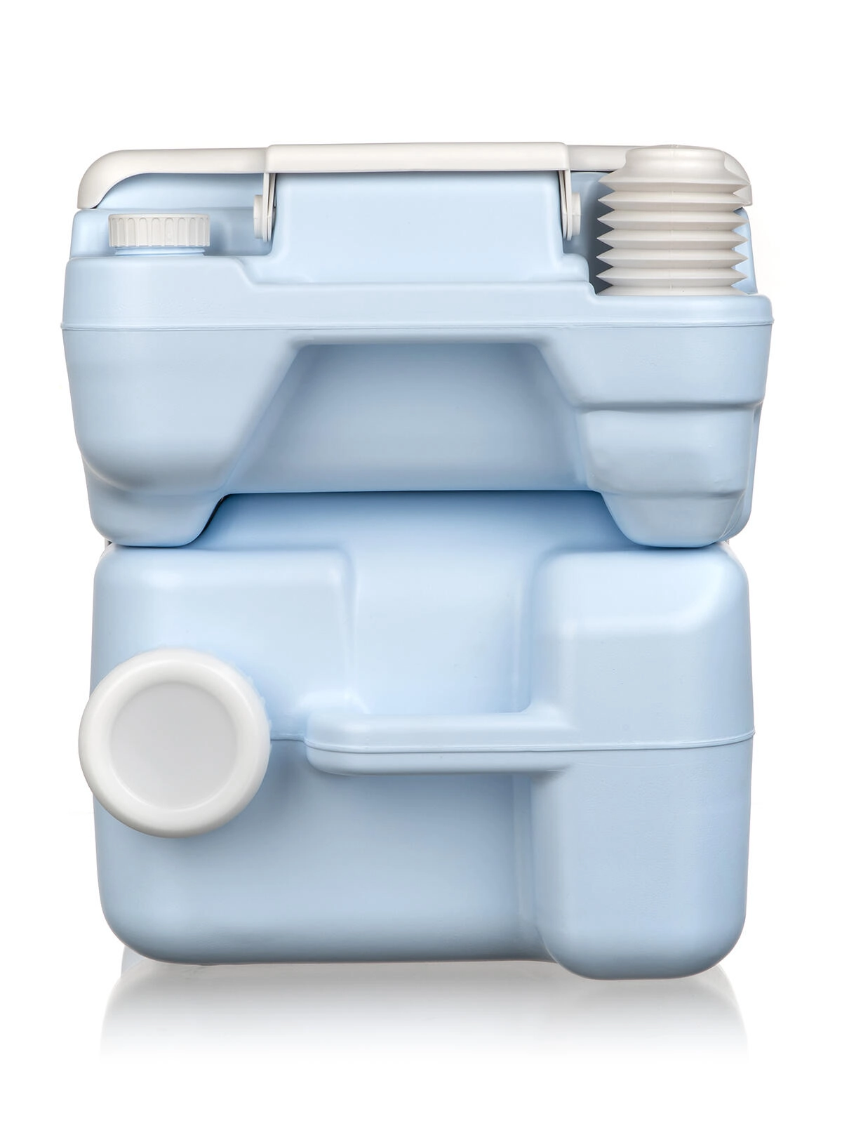 Ovaj kompaktni kemijski WC donosi udobnost doma i u outdoor okruženje. Veliki volumen spremnika za otpad 20 l i spremnika za čistu vodu 14 l pruža dovoljnu kapacitetu za višednevnu upotrebu. Izdržljiv HDPE materijal je kemijski postojan, bez neugodnih mirisa i netoksičan, pa je WC prikladan za kampiranje, kamp-kućice, brodove i za osobe sa smanjenom pokretljivošću.
