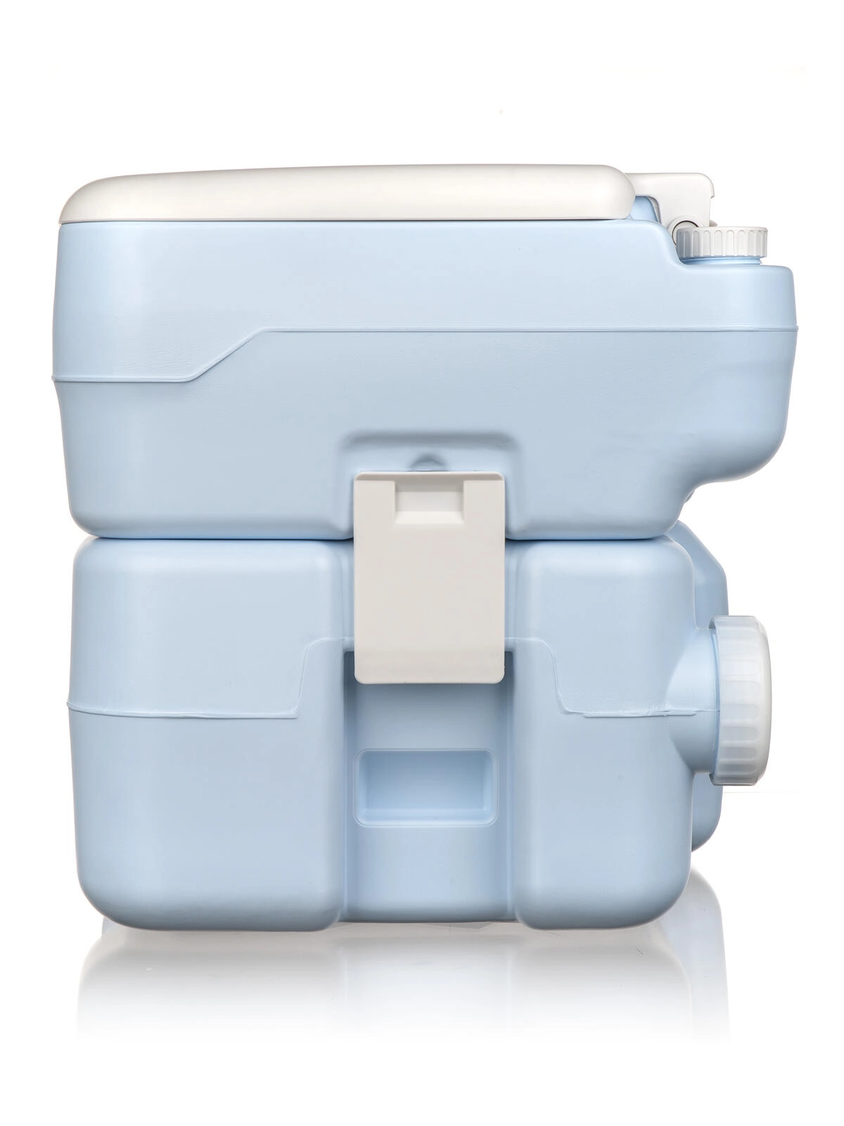Spremnik za otpad 20 l i 14 l spremnik za čistu vodu pružaju dovoljno prostora za višednevnu upotrebu u kampu, kamp-kućici i na brodu, uz zadržavanje prirodne visine sjedenja.