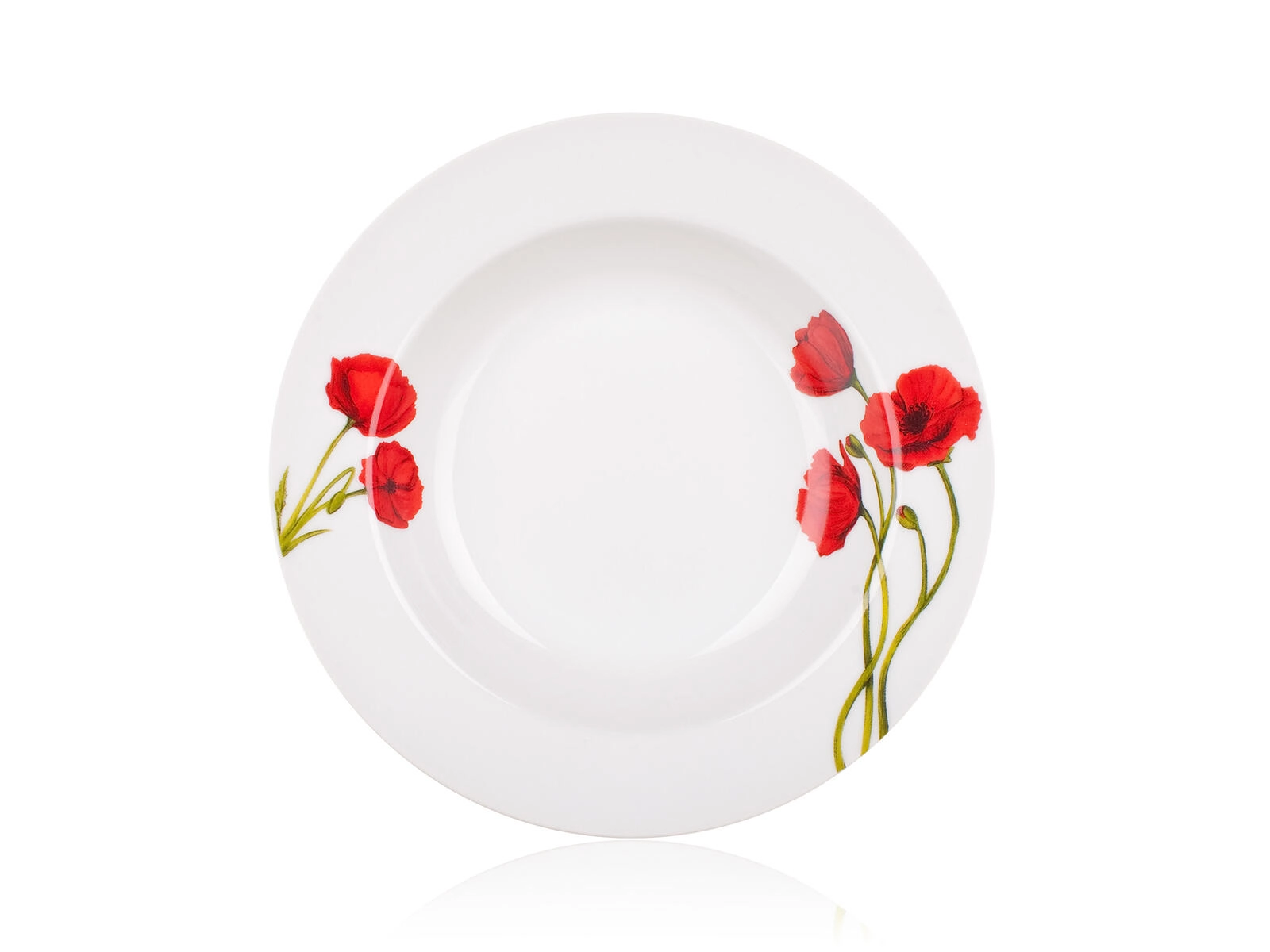 Nježnu bijelu podlogu upotpunjuje izražajan motiv makova duž ruba tanjura. Stvara atraktivan i harmoničan izgled za svaku priliku.