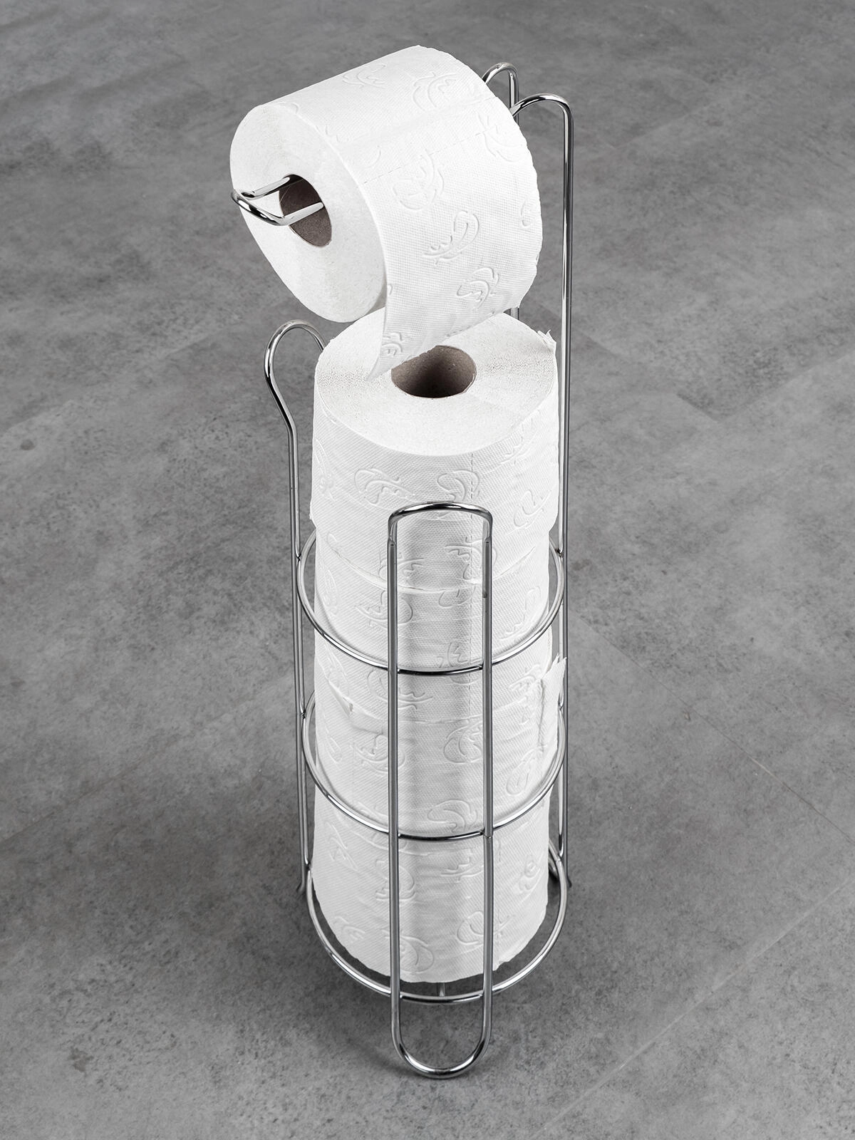Vertikalna žičana konstrukcija prima 3 rezervne role, a dodatnu rolu lako postavite na gornju ruku za trenutačnu upotrebu.