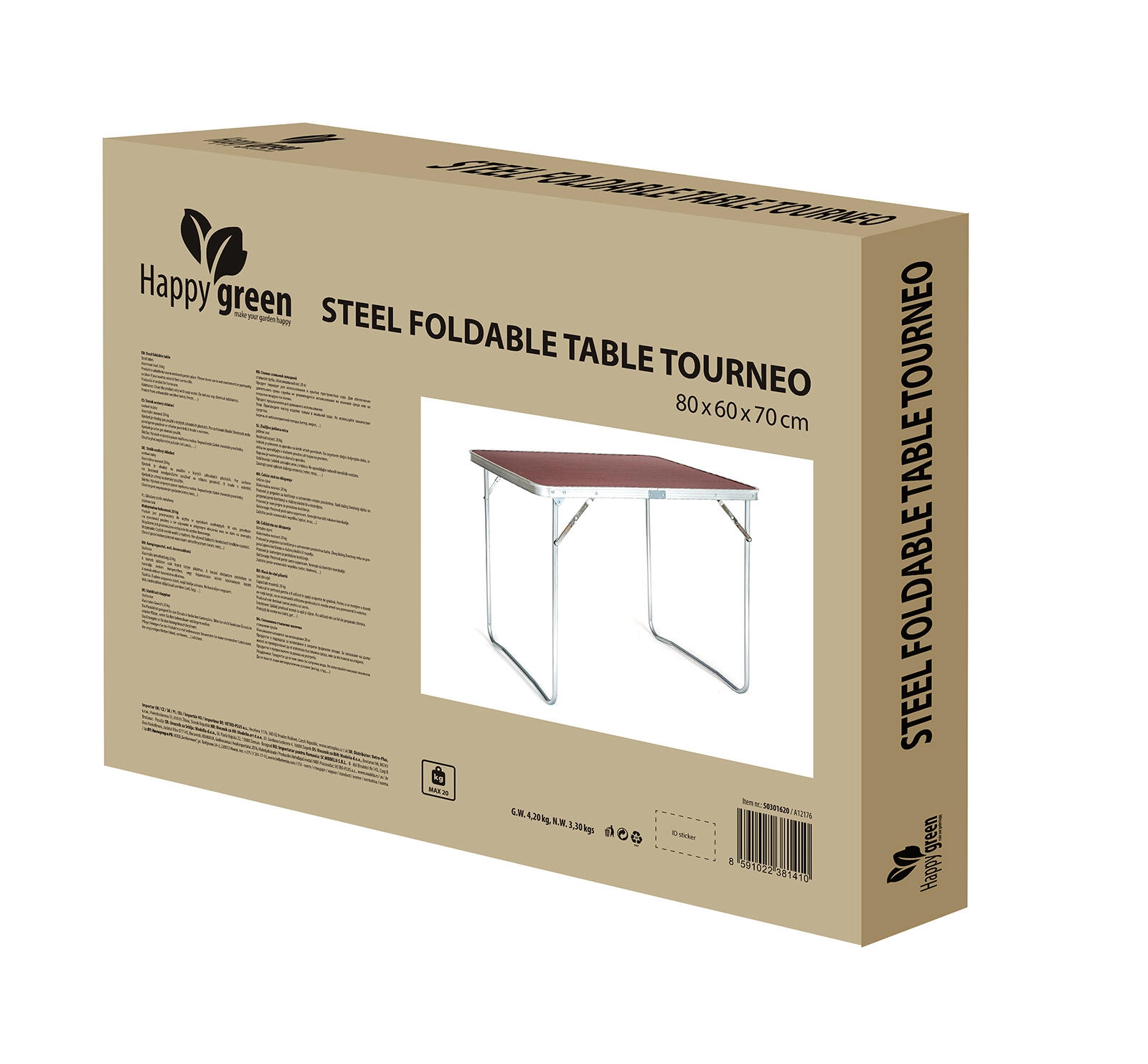 Stol se u trenu rasklapa i sklapa, čelične cijevaste noge s ukrepljenjima osiguravaju izvrsnu stabilnost, a kompaktne dimenzije nakon sklapanja omogućuju lako prenošenje i pohranu u automobilu ili garaži. Odličan za kampiranje, piknik, kao pomoćni stol za vrtne zabave ili privremenu radionicu.