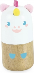 Povlačni jednorog Lily idealan je prvi prijatelj za šetnje stanom i dječjom sobom. Zahvaljujući promišljenoj izradi od lakiranog drva i nježnim filcanim detaljima igračka je ne samo estetska nego i ugodna na dodir. Nakon vađenja jednorožca s podvozja pretvara se u rumba kuglu koja djecu uvodi u zvukove i ritam.