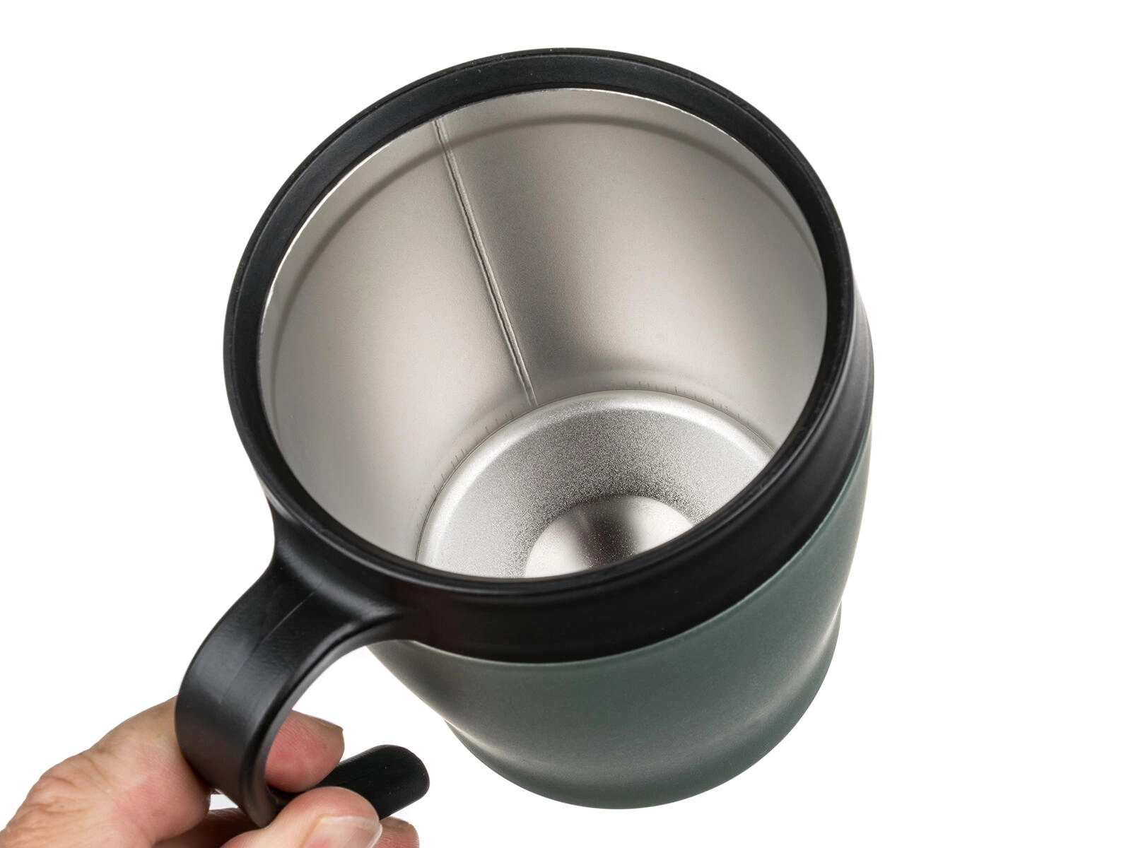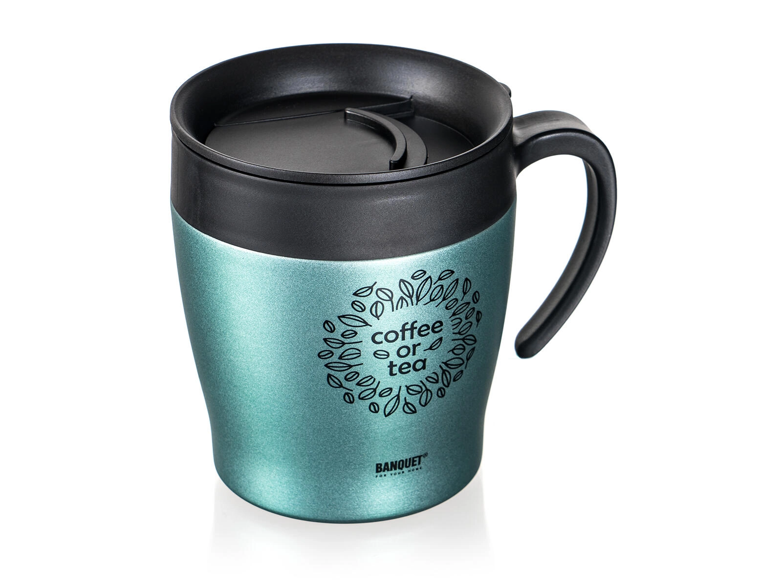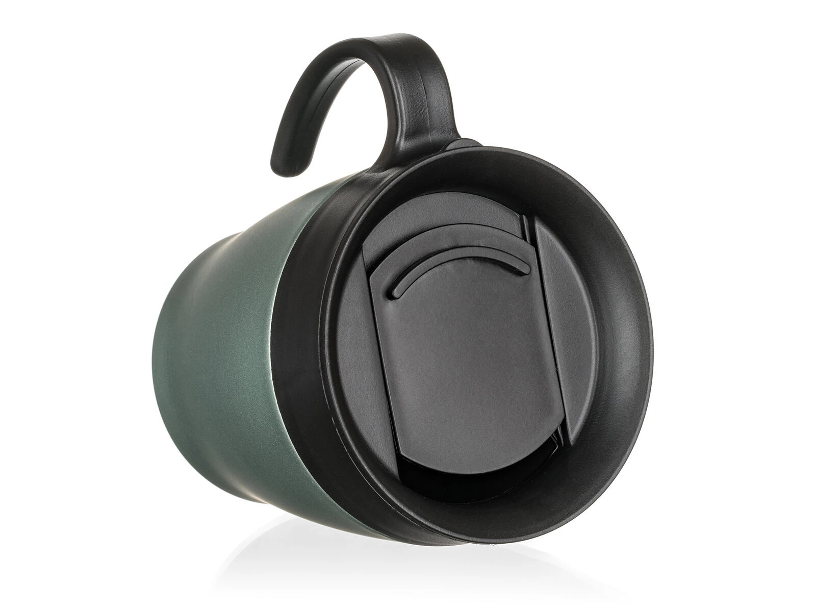 Praktičan poklopac omogućuje ugodno ispijanje u pokretu. Poklopac nije potpuno nepropustan – za sigurnu upotrebu preporučujemo držati u uspravnom položaju. Elegantna zelenosiva metalik završna obrada daje stila vašem svakodnevnom ritualu.