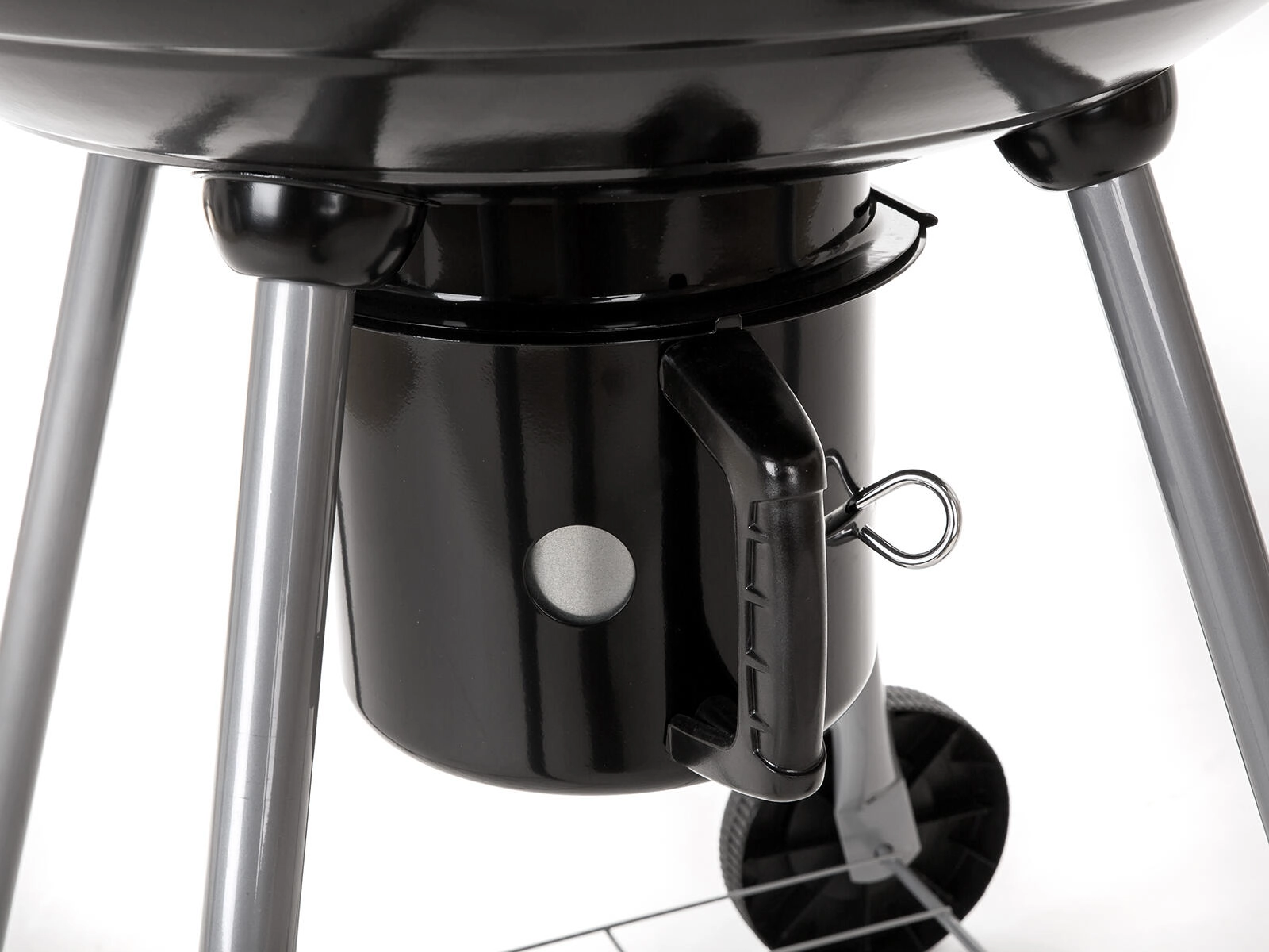 Praktični izvadivi spremnik za pepeo ubrzava čišćenje nakon roštiljanja, a kotačići omogućuju udobno premještanje roštilja na terasi ili u vrtu. Stabilna konstrukcija s nogama od nehrđajućeg čelika i pocinčanom rešetkom za ugljen jamči trajnost i siguran rad.