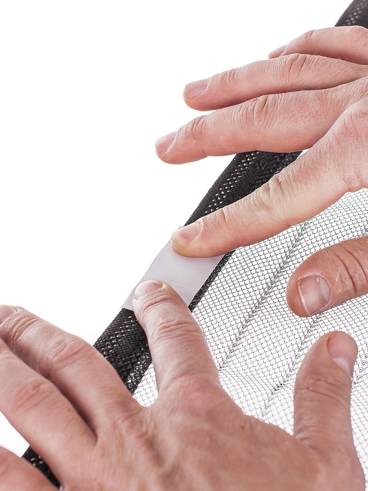 Samoljepljiva traka s čičkom omogućuje brzo pričvršćivanje i skidanje mreže. Bez bušenja, čavala ili vijaka.