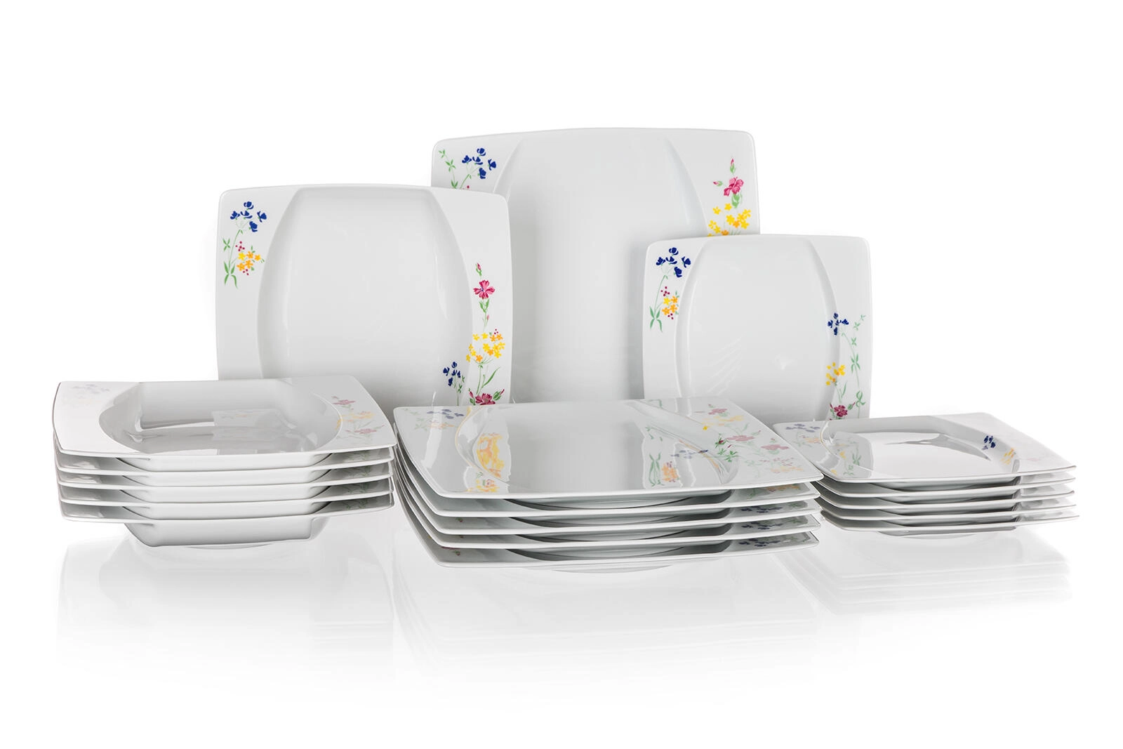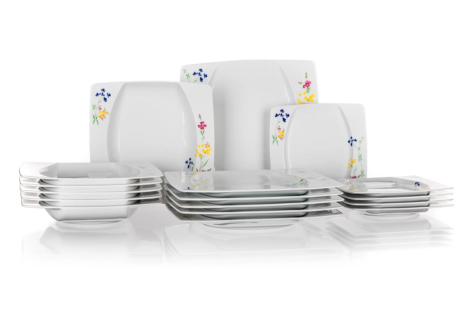 U setu ćete pronaći sve za kompletno posluživanje – od juha preko glavnih jela do deserata. Četvrtasti oblik s blago udubljenim središtem pomaže pri elegantnoj prezentaciji jela i sprječava prelijevanje sokova.