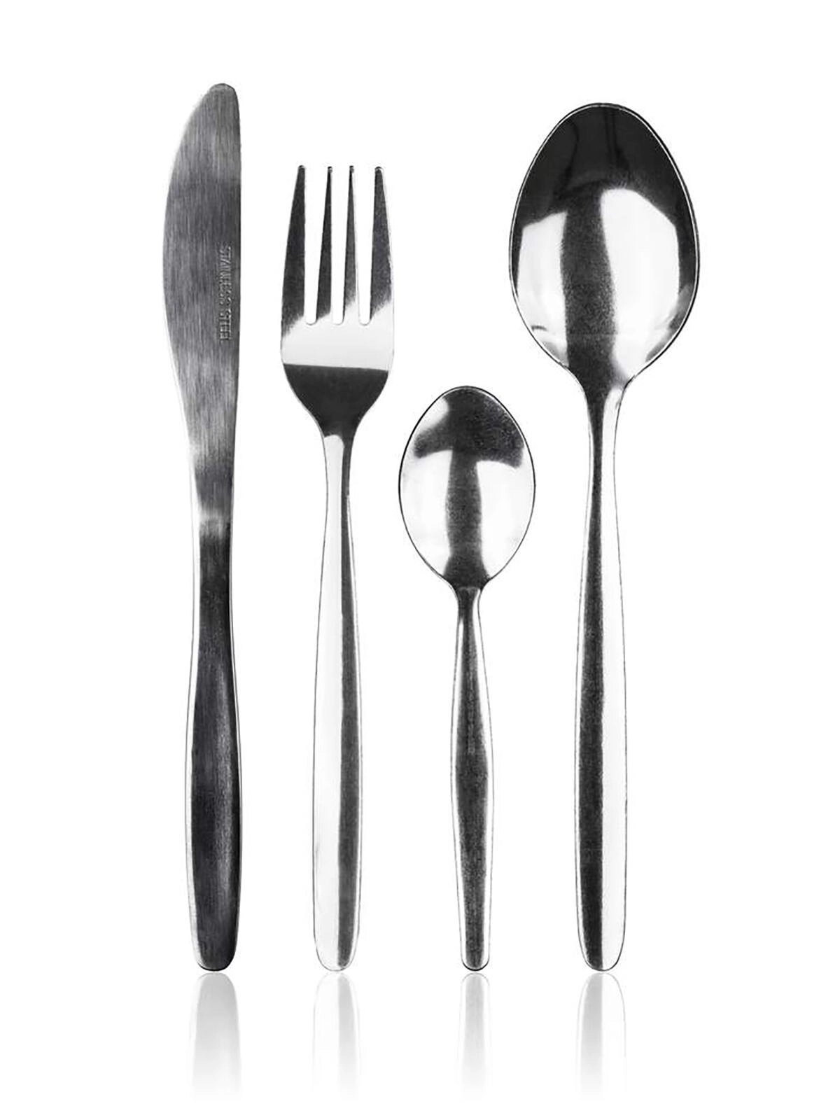 Ovaj komplet uključuje 6 noževa (20,5 cm), 6 vilica (19 cm), 6 žlica (18,5 cm) i 6 čajnih žličica (14 cm). Pribor je izrađen od izdržljivog nehrđajućeg čelika s doradom površine za svakodnevnu udobnost i pouzdanost – nož s hand polish, ostali dijelovi s tumble polish za ujednačen sjaj.
