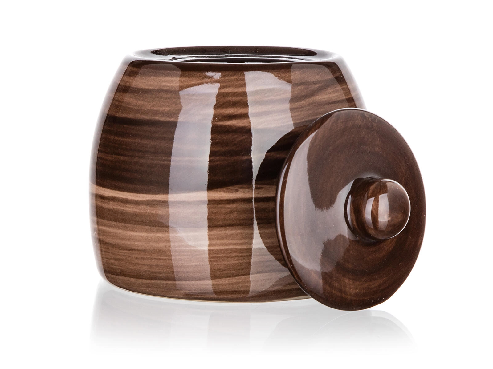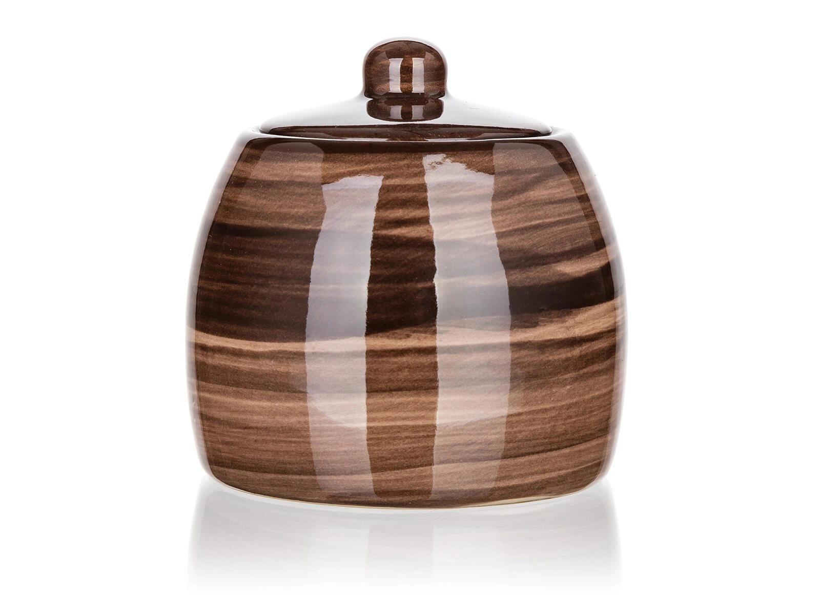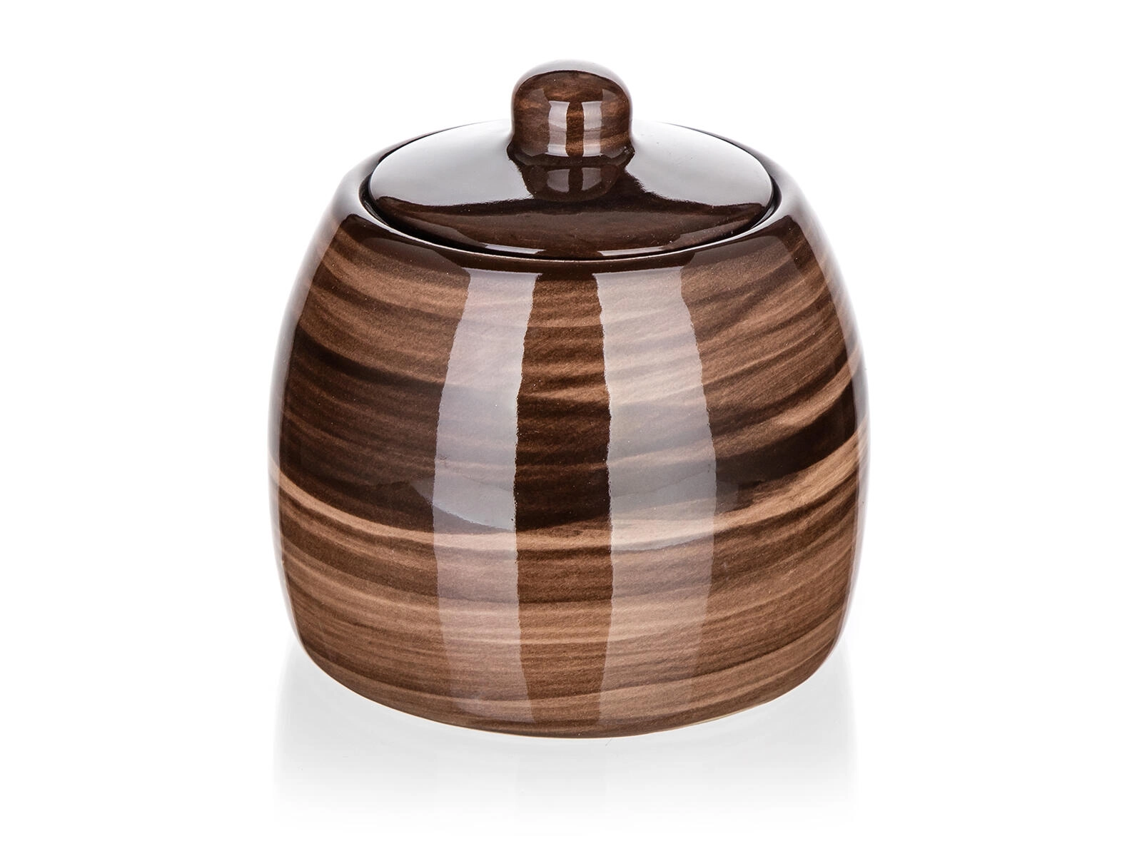 Smeđa keramička posuda za šećer Palas pristaje i klasičnim i modernim kuhinjama. Stilska glazura s nježnim uzorkom drveta daje vašem stolu topao i prirodan dojam, dok poklopac s udobnim prihvatom štiti sadržaj od vlage i nečistoća.