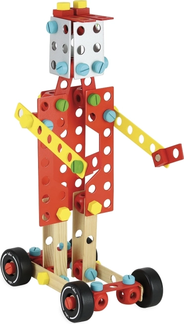 Drvena konstrukcijska igra Vilac Super Batibloc idealan je izbor za male graditelje. Više od 100 šarenih dijelova, vijaka i spojnica omogućuje izradu najrazličitijih modela – od vozila do jednostavnih figurica. Priloženi priručnik s 6 projekata korak po korak pomaže pri prvim pokušajima, a zatim podržava vlastito kreativno stvaranje.