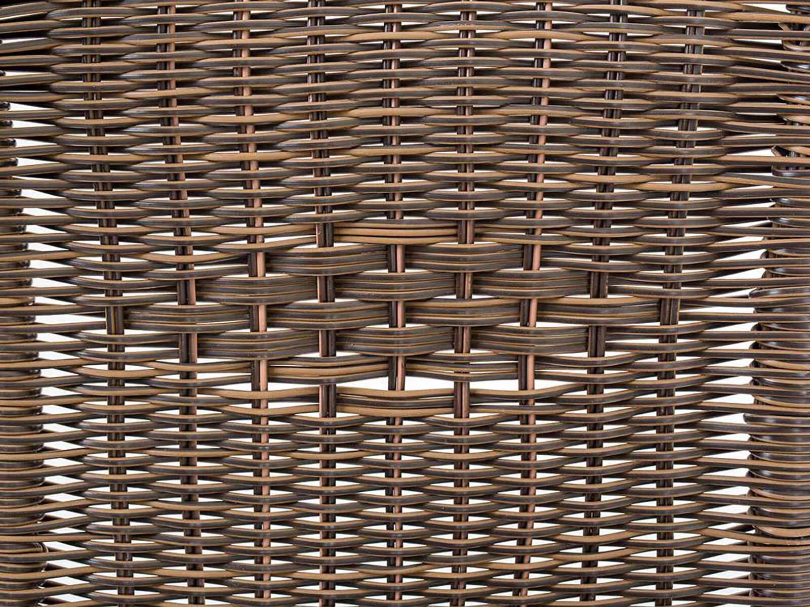 Sintetički ratan u smeđoj nijansi otporan je na vlagu i lako se čisti, stoga je idealan za vanjsku upotrebu tijekom cijele godine.