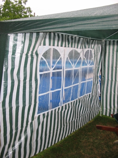 Zahvaljujući dimenziji 295 × 190 cm savršeno pristaje većini paviljona 3 × 3 m. Ugradnja je jednostavna zahvaljujući trakama i držačima; bočnu stranicu moguće je i brzo skinuti ovisno o vremenu ili potrebi.