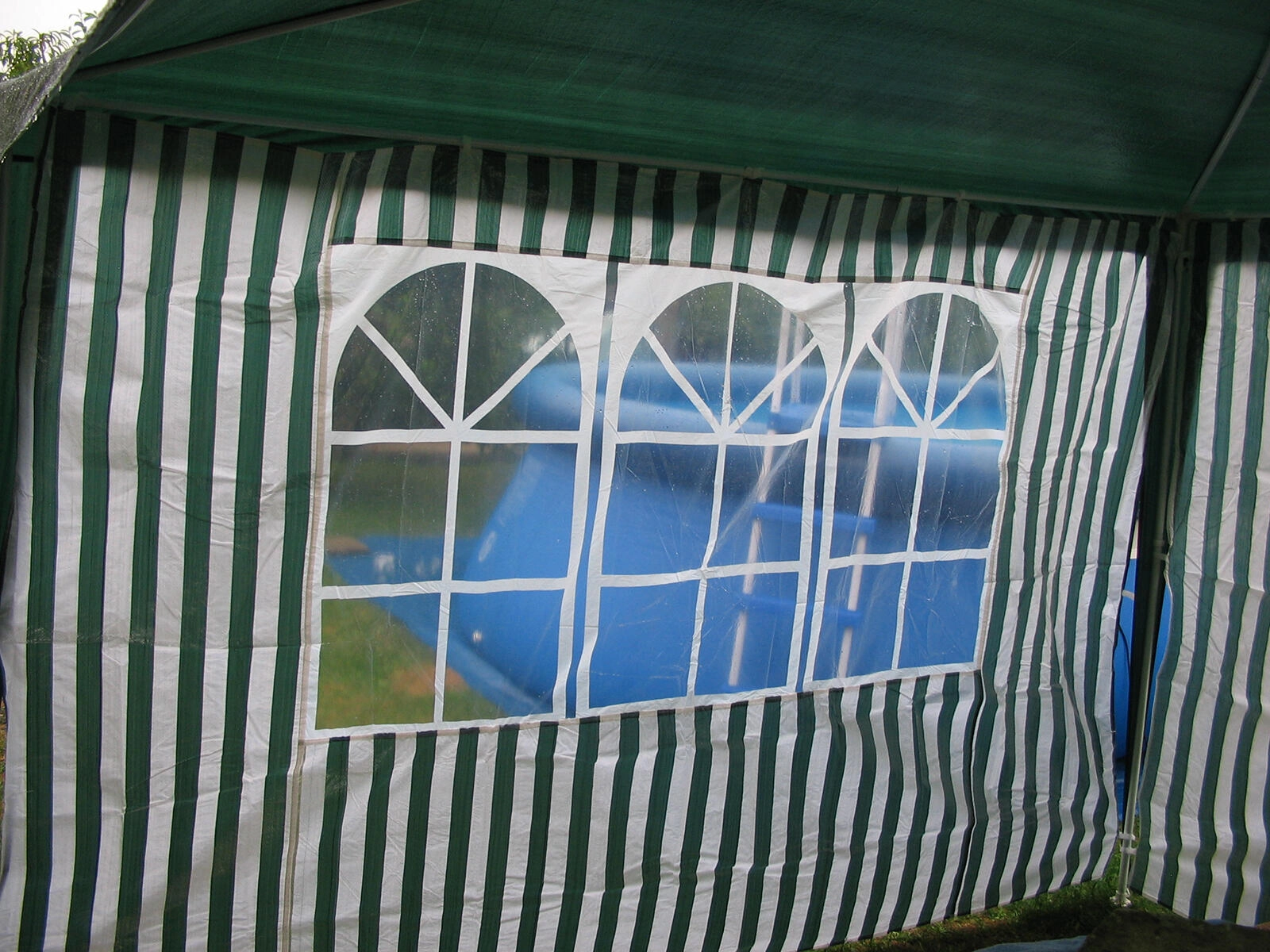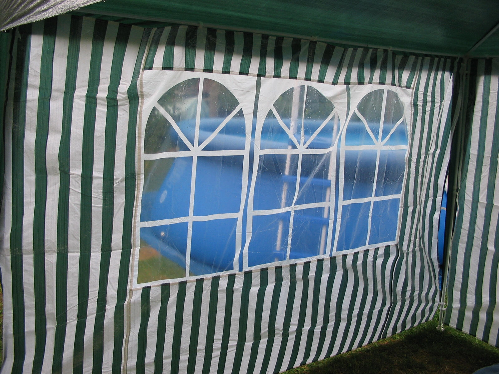 Bočna stijenka za paviljon 295 × 190 cm s prozorima – bijelo‑zelene pruge