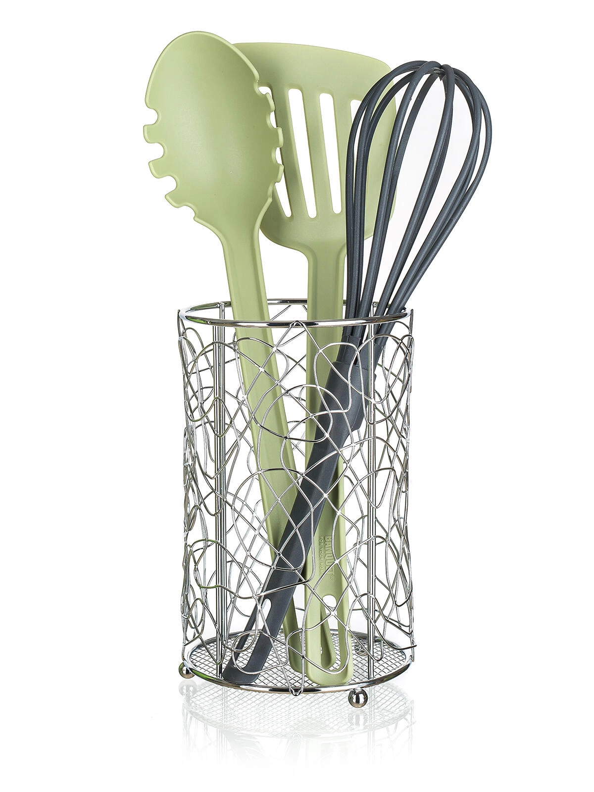 Idealan za odlaganje žlica, vilica, lopatica ili pjenjača izravno na kuhinjskoj radnoj plohi. Kompaktne dimenzije štede prostor, a ipak pružaju dovoljno mjesta za svakodnevne potrebe. Stabilna baza pomaže spriječiti prevrtanje i održava radnu površinu urednom.