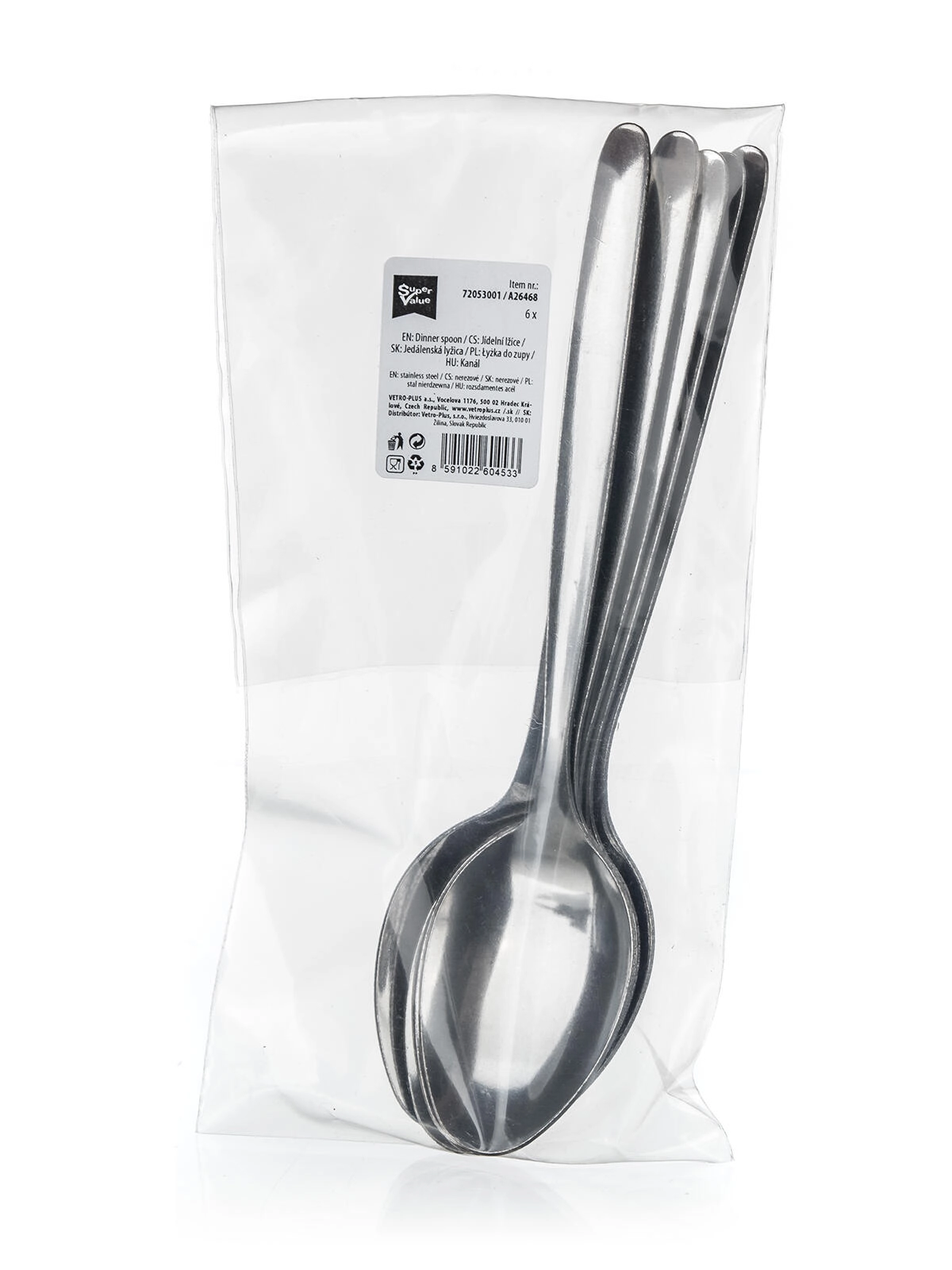 Set žlica za jelo SUPER VALUE idealan je izbor za svakodnevnu upotrebu. Kvalitetni nehrđajući čelik osigurava dugi vijek trajanja, otpornost na koroziju i jednostavno čišćenje. Jednostavan, bezvremenski dizajn odlično se uklapa u različite stilove postavljanja stola i bez problema će nadopuniti vaš postojeći pribor za jelo.