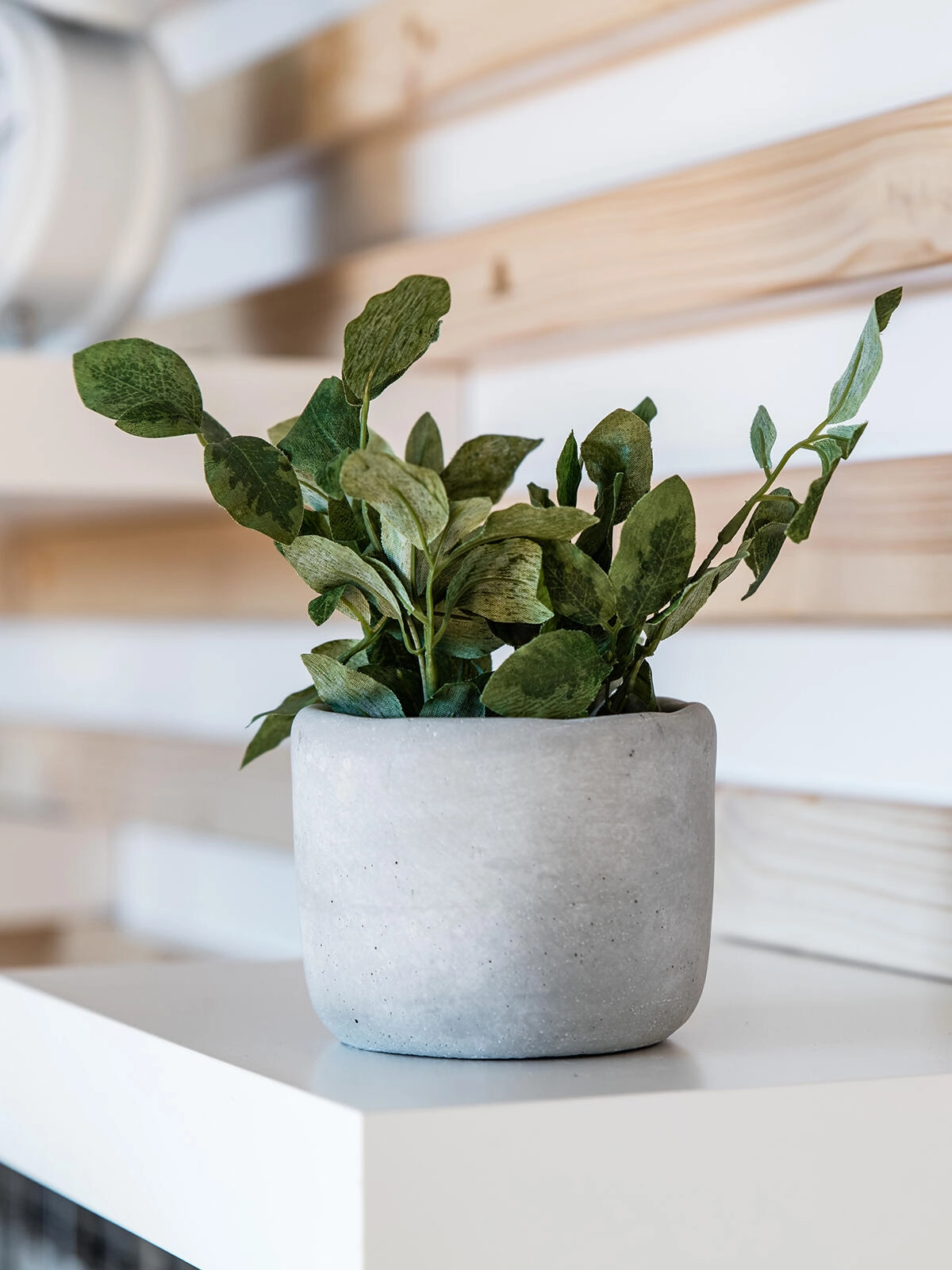 Unesite svježinu u interijer s ovom umjetnom zelenom biljkom u betonskoj posudi visine 20 cm. Nudi realističan izgled bez održavanja, idealna je za stol, policu i prozorsku dasku te se savršeno uklapa u moderne i minimalističke prostore.