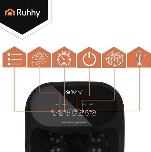 Masažer za stopala RUHHY pretvara vaš dom u privatni SPA. Oslobađa napetost, potiče prokrvljenost stopala i pomaže regeneraciji nakon napornog dana. Zahvaljujući snažnom grijaču 550 W brzo postižete idealnu temperaturu vode i održavate je tijekom cijele procedure.