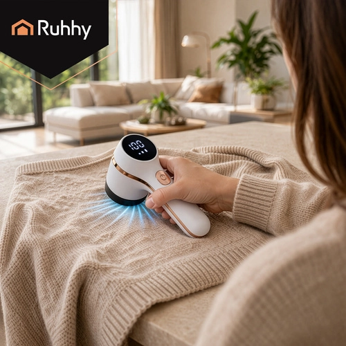 Nema više iznošenih džempera ni presvlaka. Bežični odstranjivač mucica RUHHY brzo i nježno uklanja mucice, dlačice i vlakna s odjeće i tekstila. Nudi 6 nehrđajućih oštrica za visoku učinkovitost, 3 načina rada za različite materijale, jasan LCD zaslon i praktično punjenje putem USB‑C. Zahvaljujući velikoj rešetki od 50 mm čisti veće površine brže i bez napora.