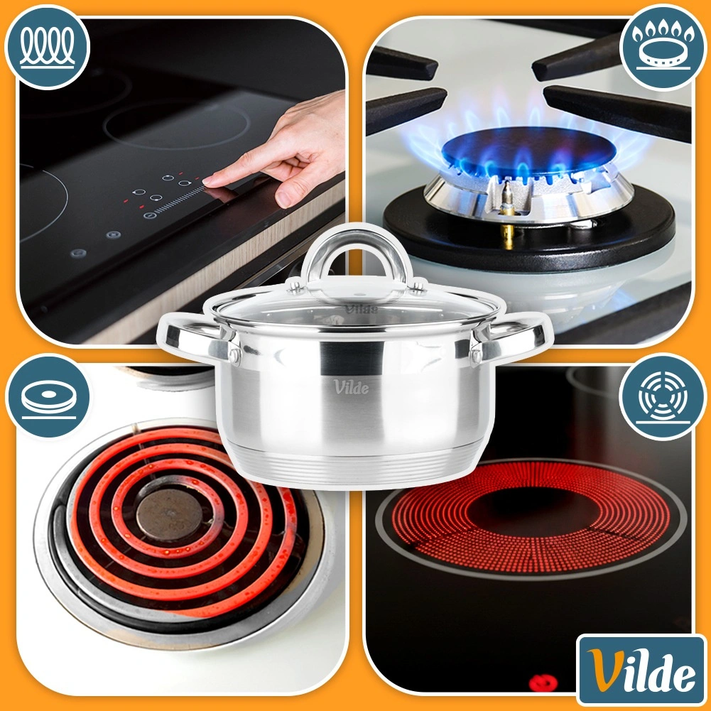 Lonac od nehrđajućeg čelika kompatibilan je s plinskim, električnim, keramičkim, halogenim i indukcijskim pločama za kuhanje.