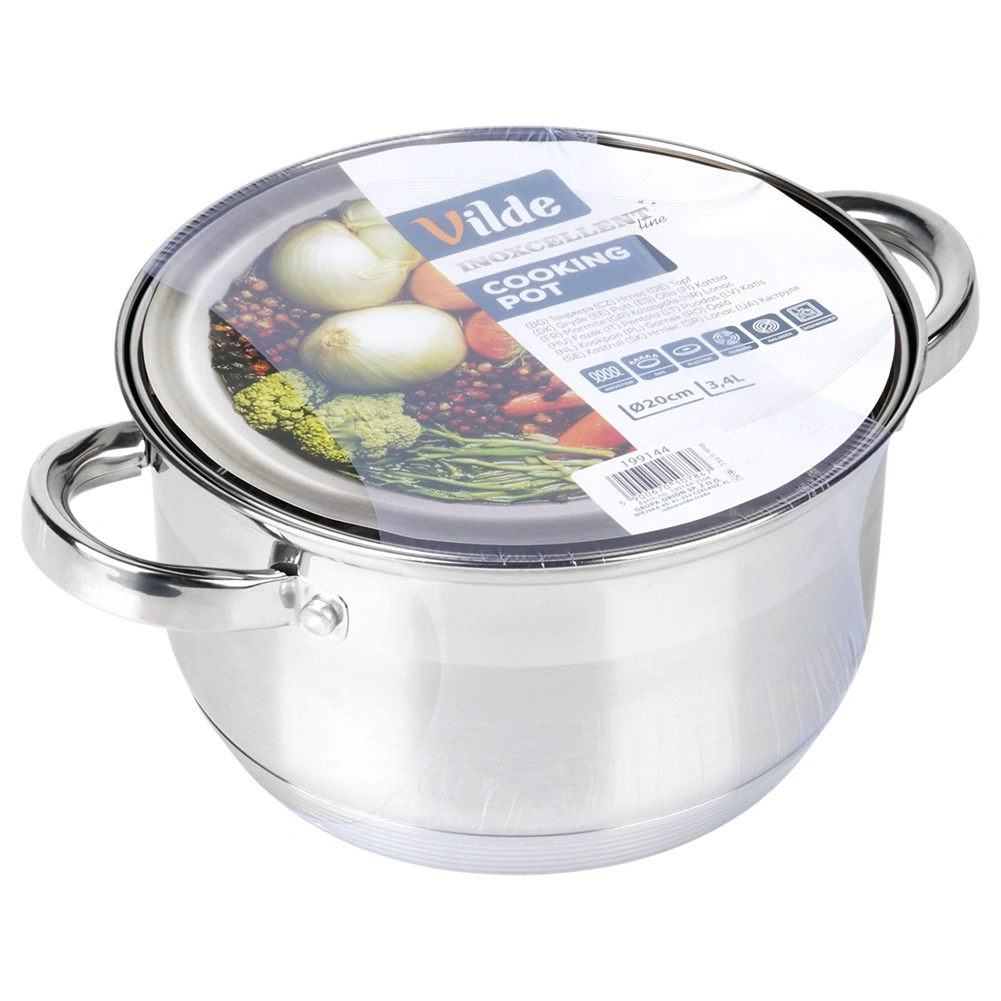 Svestrani lonac od visokokvalitetnog nehrđajućeg čelika kombinira sjajnu i mat završnu obradu za elegantan izgled i dug vijek trajanja. Stakleni poklopac s inox rubom i ručkom omogućuje kontrolu kuhanja bez podizanja, a ventil za paru sprječava prekipavanje. Idealan za svakodnevnu pripremu juha, umaka, povrća i glavnih jela.