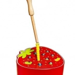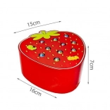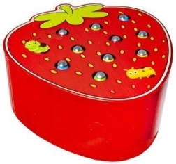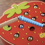 Zabavna drvena igra u obliku ukusne jagode razvija finu motoriku i koncentraciju. Djeca pomoću magnetske štapić-šipke izvlače i umeću crviće u otvore. Igra je izrađena od sigurnih materijala i ima žive boje koje potiču djecu na igru i učenje. Odličan izbor za razvoj koordinacije oko–ruka, kreativnosti i strpljenja.