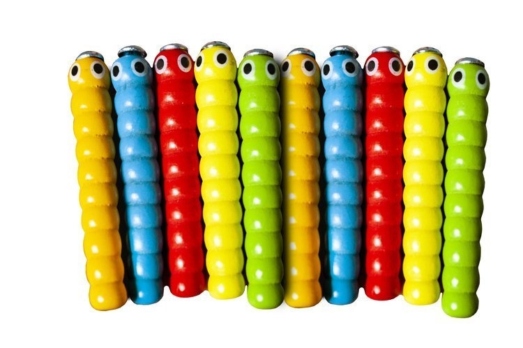 - Kompletan set: drvena jagoda, magnetska štapić-šipka i 10 crvića/gusenica