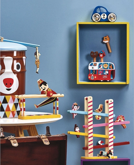 Plavi automobilčić Vilac izrađen je od lakiranog drva, što osigurava njegovu izdržljivost i elegantan izgled. Ima metalne kotače s gumenom oblogom koji omogućuju glatku i tihu vožnju. Zahvaljujući posebnom rješenju osovine, automobilčić može skretati lijevo i desno, što igri daje dodatnu dinamiku.