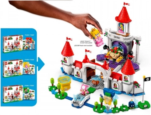 Uđite u kraljevstvo PRINCESS PEACH s bogato razrađenim modelom dvorca koji će proširiti vaše LEGO Super Mario staze. Čeka vas prijestolna dvorana s rotirajućim zidom iza kojeg se skriva Bowser, vitraj s Peach, tajna slika s akcijskom oznakom i torta s Goombom. Tu su i posebna dvoranska cijev, vremenski blok, laveni most i zdjela s ljubičastim voćem.