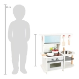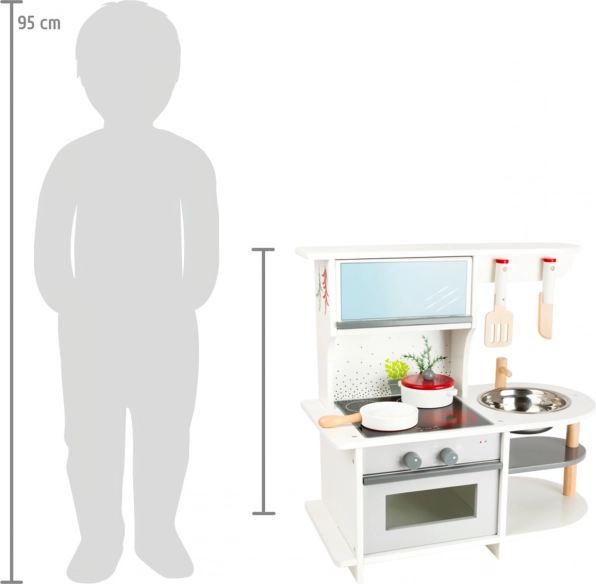 Izrađena od izdržljivog drva i metala, kuhinjica je dizajnirana za dugi vijek trajanja i mnogo sati igre.