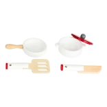 Zahvaljujući robusnoj konstrukciji od drva i metala, ova kuhinjica je izdržljiva i pruža niz interaktivnih doživljaja. Isporučuje se s ilustriranim uputama za montažu i osnovnim setom pribora.