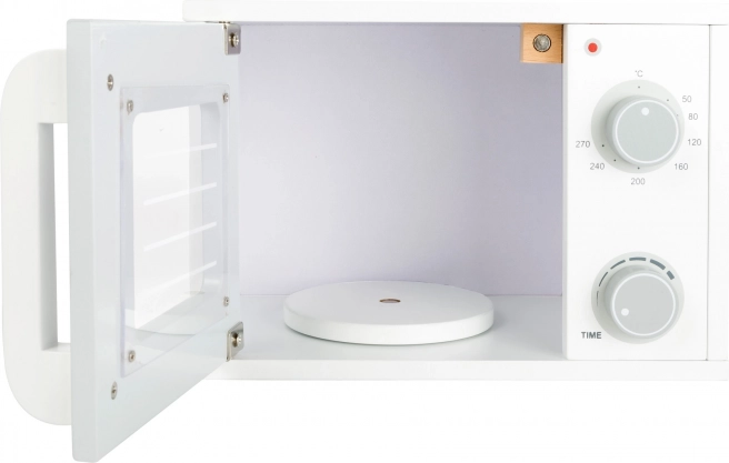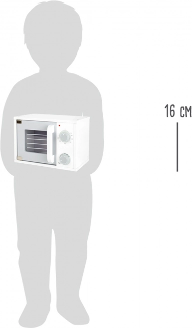 Ova mikrovalna pećnica izrađena je od kvalitetnog drveta i idealna je za djecu od 3 godine. Dimenzije proizvoda su 24x15x16 cm, što ju čini savršenom veličinom za svaku dječju kuhinju.