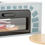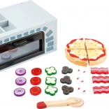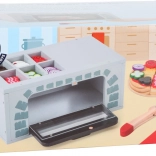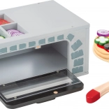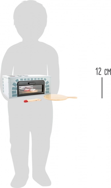 Drvena pizza peć s priborom idealna je za male kuhare koji žele doživjeti zabavu pečenja kao odrasli. Ova igračka razvija finu motoriku i potiče aktivnu igru uloga. Pizza je sastavljena od drvenih dijelova spojenih čičkom, što omogućuje jednostavnu promjenu dodataka prema dječjoj mašti.