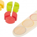 Ova atraktivna šarena edukativna igra od 100% FSC certificiranog drva idealan je alat za razvoj fine motorike i koncentracije kod djece. Veliki valjak podijeljen je na manje segmente koje djeca razvrstavaju prema obliku i boji.