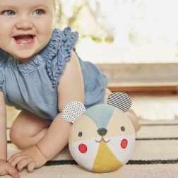 Mekana tekstilna zvečka u obliku medvjedića donosi bebama nježne zvučne poticaje i sigurnost ugodnog držanja. Zahvaljujući organskim materijalima prikladna je i za osjetljivu kožu te podupire razvoj fine motorike i senzorne percepcije.