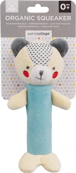 Ovaj slatki medvjedić spaja sigurnost, održivost i zabavu. Pri stisku nježno pišti, a pri pokretu zvecka, čime prirodno potiče razvoj fine motorike, koordinaciju ruka–oko i osjetilne podražaje već od rođenja. Mekana izvedba od organskog GOTS certificiranog pamuka nježna je prema osjetljivoj dječjoj koži.