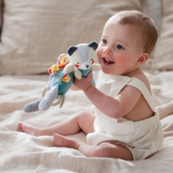Kontrastni uzorci, raznolike teksture i nježni detalji potiču razvoj vida, dodira i fine motorike već od 0+.