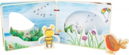 Ova kvalitetna drvena slikovnica SMALL FOOT osmišljena je za male istraživače od 12 mjeseci. Zahvaljujući šarenim ilustracijama i dvjema drvenim figuricama pčelice i ptičice, djeca lako i kroz igru upoznaju životinje i biljke. Praktične čičak trake omogućuju pričvršćivanje figurica na stražnju stranu slikovnice kako se ne bi izgubile.